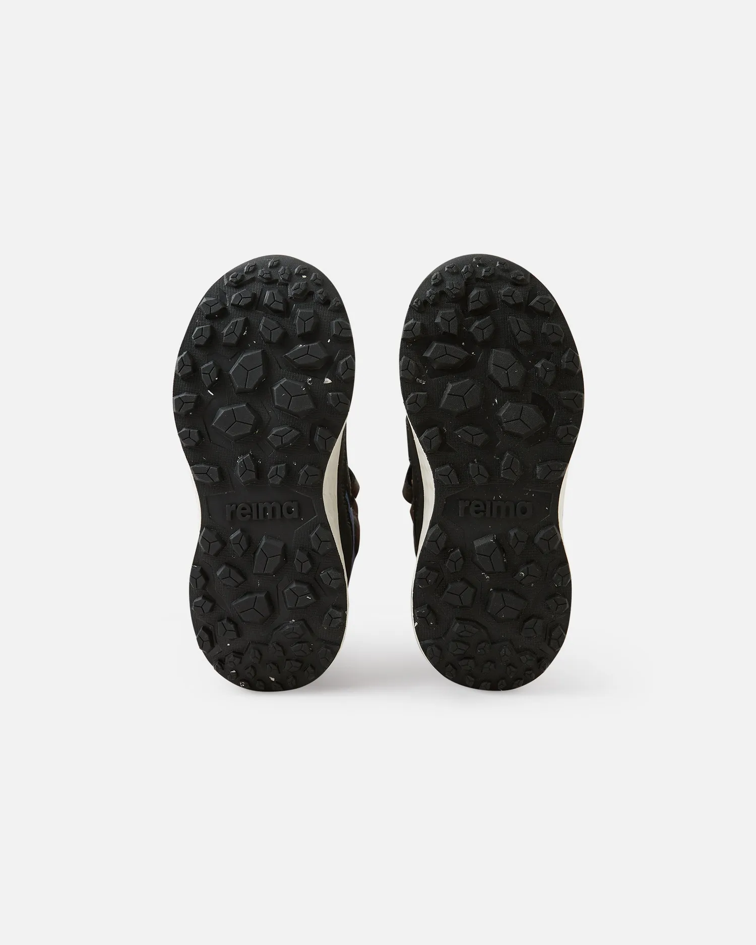 Эта модель прошла испытания в лабораторных условиях на теплоизоляцию до -20°C/-4°F. Эта обвуь не содержить продуктов животного происхождения и оснащена водонепроницаемой мембраной для сухости и комфорта, а также съемными стельками с принтом Happy Fit для легкого подбора идеального размера. Светоотражающие детали улучшают заметность в темноте, а флисовая подкладка добавляет тепла. Кроме того, гибкая и легкая подошва из EVA и резины содержит переработанную резину в составе, что является еще одним шагом к цикличному производству — одной из целей разработки продукции Reima.
