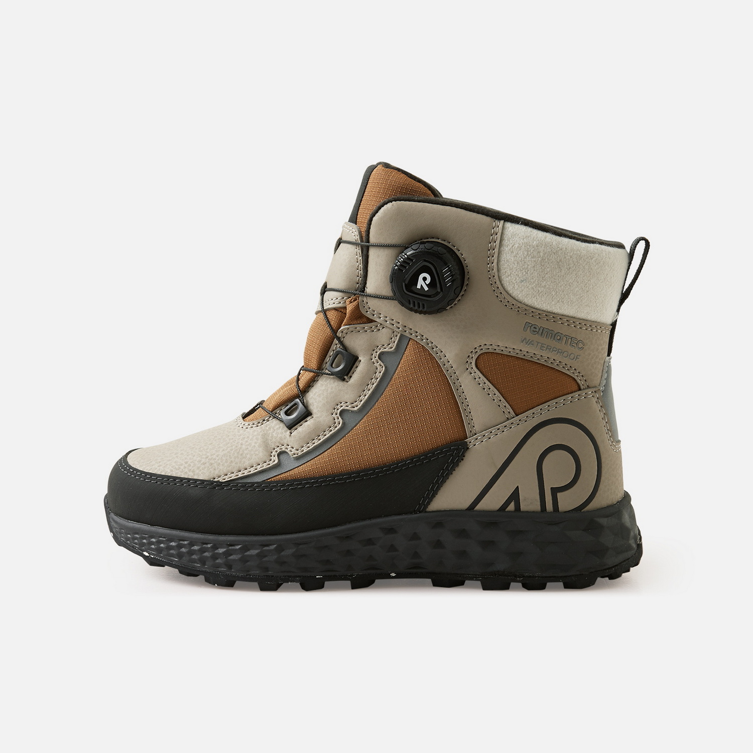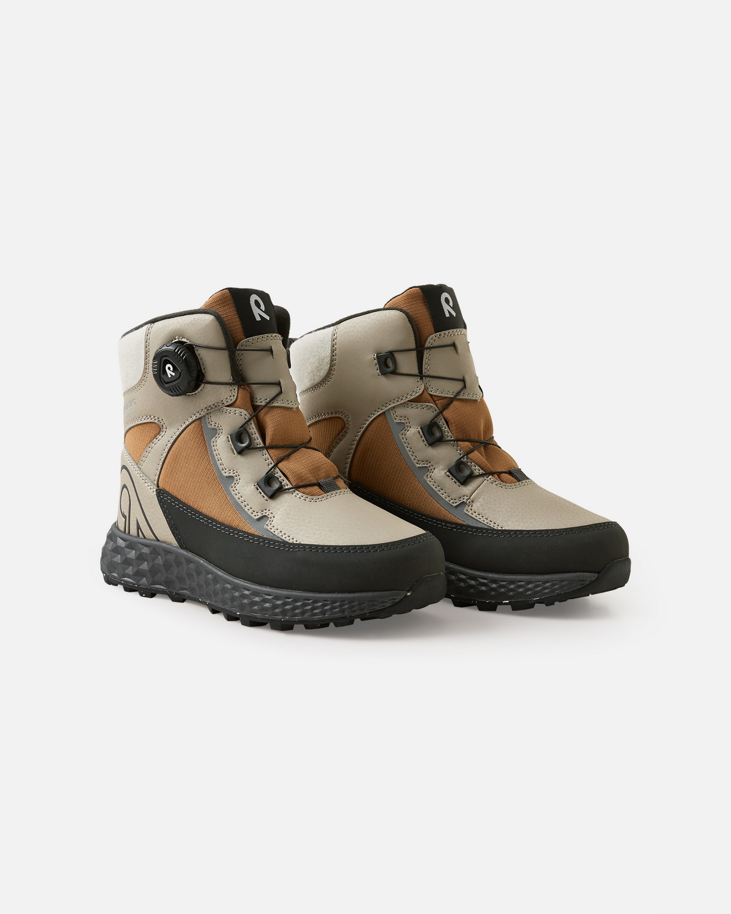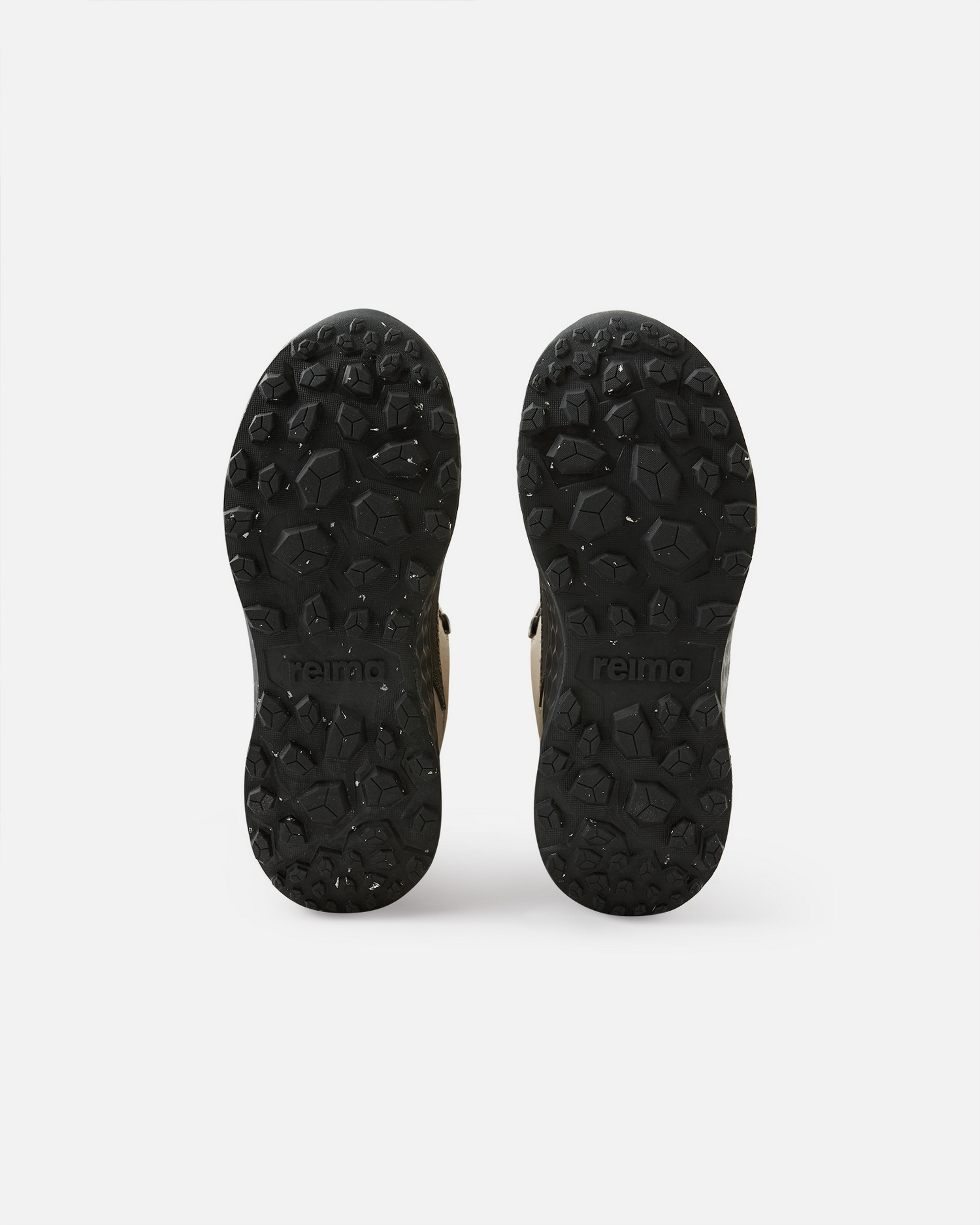 Эта модель прошла испытания в лабораторных условиях на теплоизоляцию до -20°C/-4°F. Эта обвуь не содержить продуктов животного происхождения и оснащена водонепроницаемой мембраной для сухости и комфорта, а также съемными стельками с принтом Happy Fit для легкого подбора идеального размера. Светоотражающие детали улучшают заметность в темноте, а флисовая подкладка добавляет тепла. Кроме того, гибкая и легкая подошва из EVA и резины содержит переработанную резину в составе, что является еще одним шагом к цикличному производству — одной из целей разработки продукции Reima.