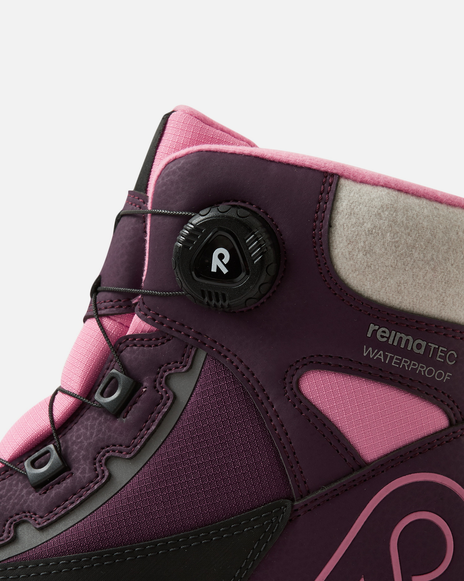 Эта модель прошла испытания в лабораторных условиях на теплоизоляцию до -20°C/-4°F. Эта обвуь не содержить продуктов животного происхождения и оснащена водонепроницаемой мембраной для сухости и комфорта, а также съемными стельками с принтом Happy Fit для легкого подбора идеального размера. Светоотражающие детали улучшают заметность в темноте, а флисовая подкладка добавляет тепла. Кроме того, гибкая и легкая подошва из EVA и резины содержит переработанную резину в составе, что является еще одним шагом к цикличному производству — одной из целей разработки продукции Reima.