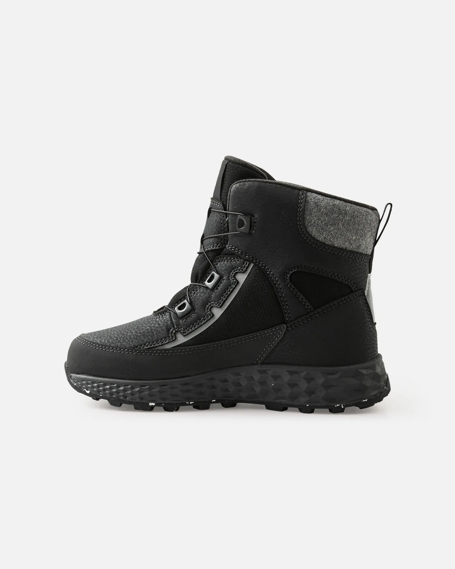 Эта модель прошла испытания в лабораторных условиях на теплоизоляцию до -20°C/-4°F. Эта обвуь не содержить продуктов животного происхождения и оснащена водонепроницаемой мембраной для сухости и комфорта, а также съемными стельками с принтом Happy Fit для легкого подбора идеального размера. Светоотражающие детали улучшают заметность в темноте, а флисовая подкладка добавляет тепла. Кроме того, гибкая и легкая подошва из EVA и резины содержит переработанную резину в составе, что является еще одним шагом к цикличному производству — одной из целей разработки продукции Reima.