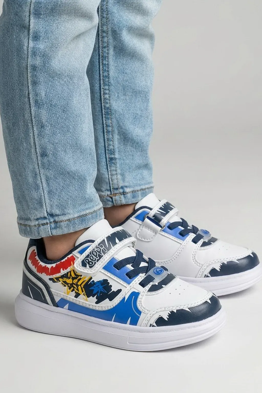 Детская повседневная обувь из экокожи — удобный и практичный вариант на каждый день. Система фиксации с липучкой и эластичной вставкой обеспечивает лёгкое надевание и комфортную регулировку по ножке. Противоскользящая подошва помогает сохранять устойчивость и уверенность при ходьбе. Подходит для активных прогулок и ежедневной носки.