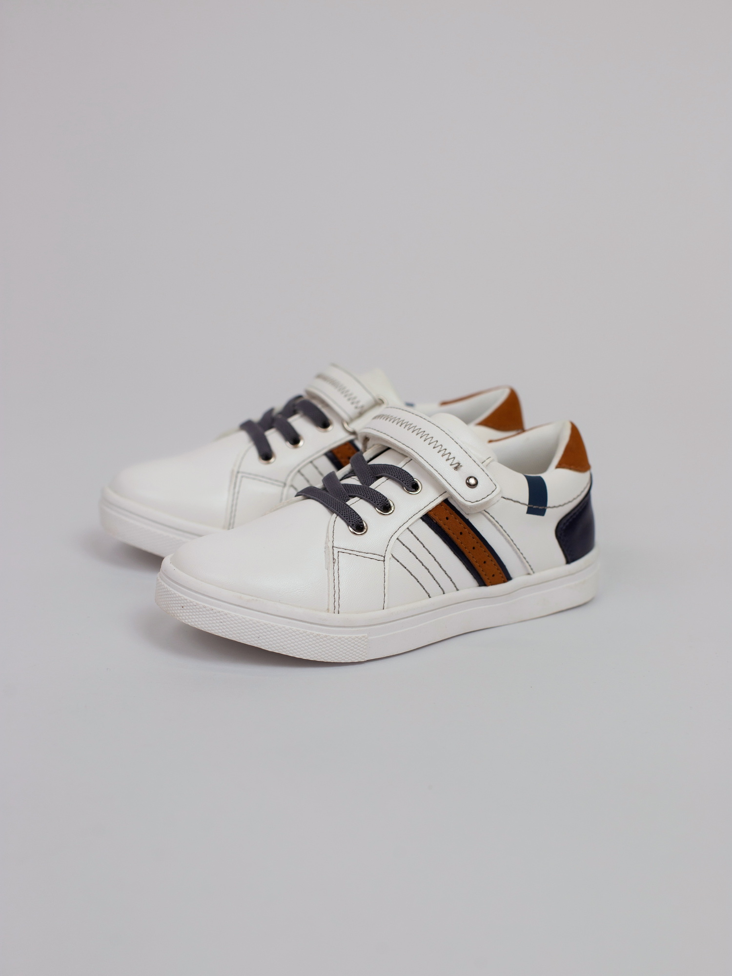 Белые кеды для детей. Универсальные белые кеды — идеальный вариант для активных прогулок и повседневного образа. Выполнены из прочных и дышащих материалов, они обеспечивают комфорт на весь день. Удобная шнуровка и липучки гарантируют хорошую фиксацию, а гибкая подошва поддерживает естественное движение стопы.