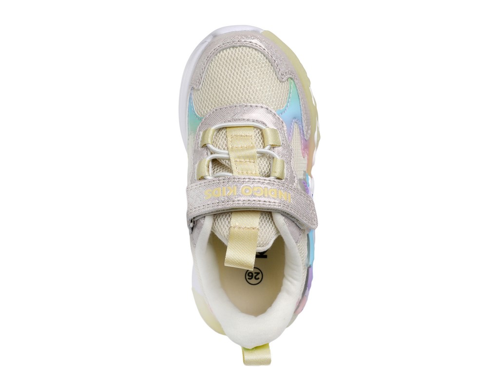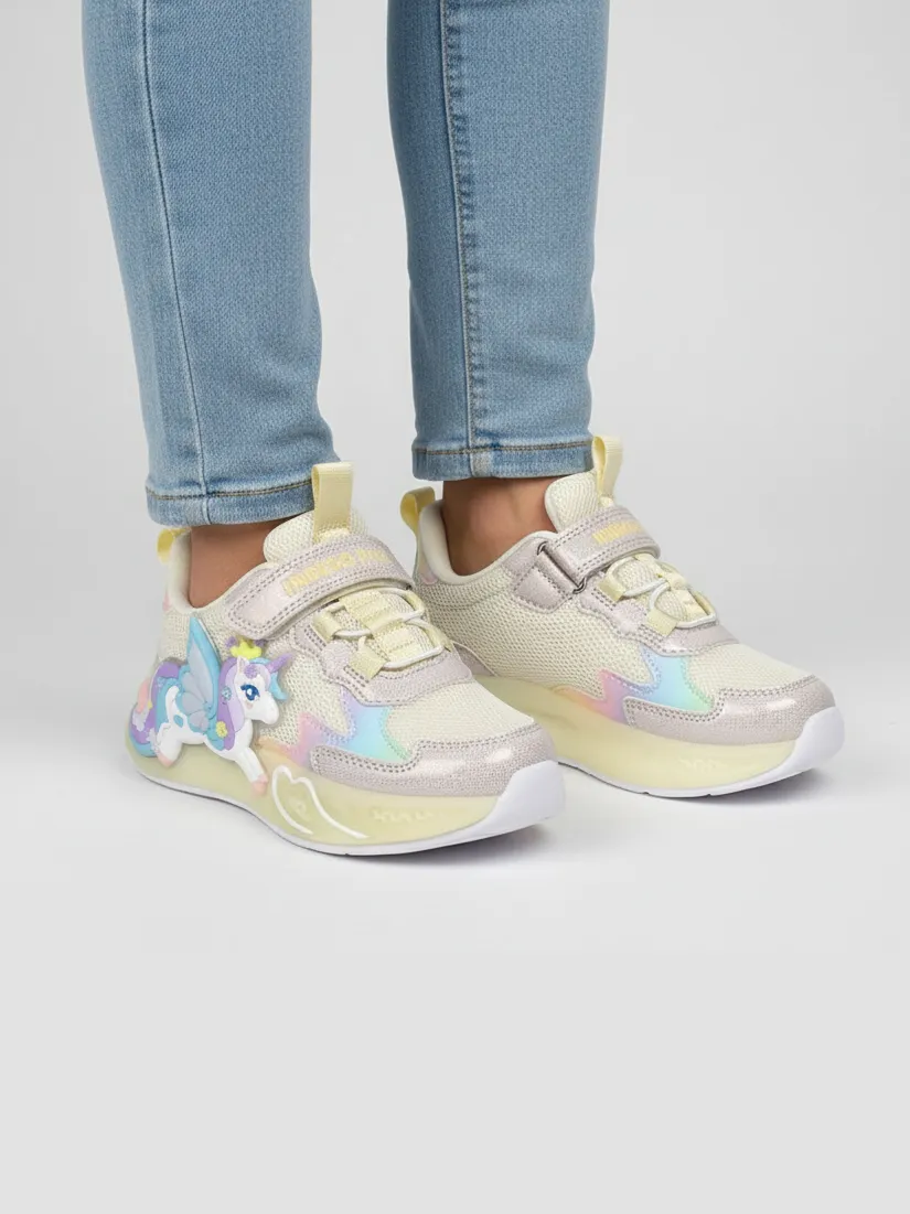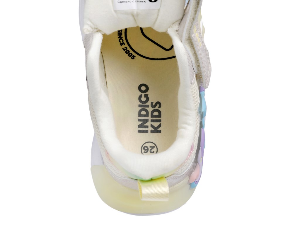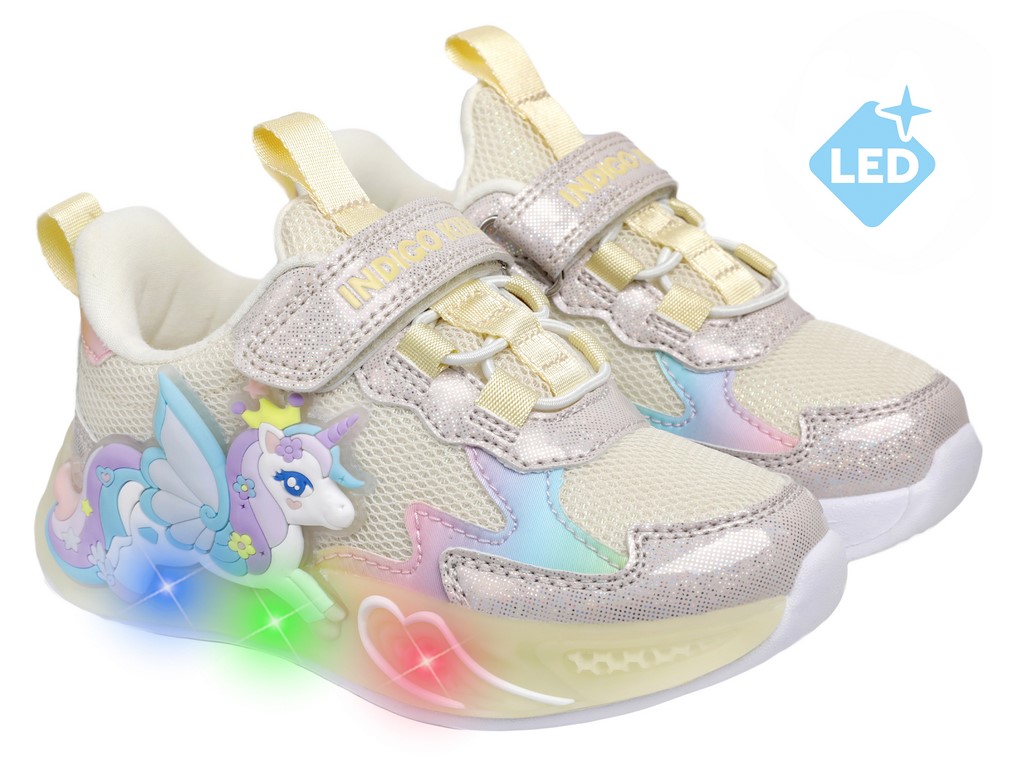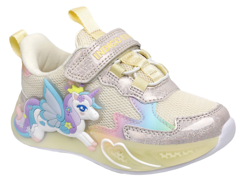 Детские летние кроссовки INDIGO KIDS с единорогом — лёгкая и стильная обувь для активных девочек для прогулок и игр в тёплое время года. Яркие светодиоды в декоре с единорогом загораются при каждом шаге, создавая эффектный образ.