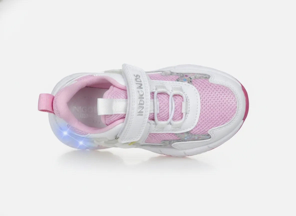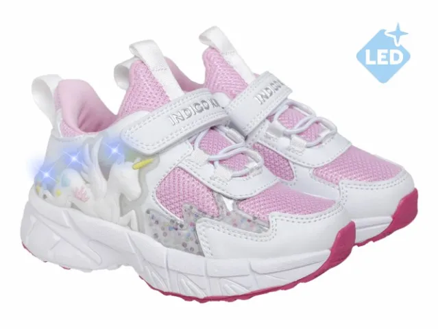 Детские летние кроссовки INDIGO KIDS с единорогом — лёгкая и стильная обувь для активных девочек для прогулок и игр в тёплое время года. Яркие светодиоды в декоре с единорогом загораются при каждом шаге, создавая эффектный образ.
