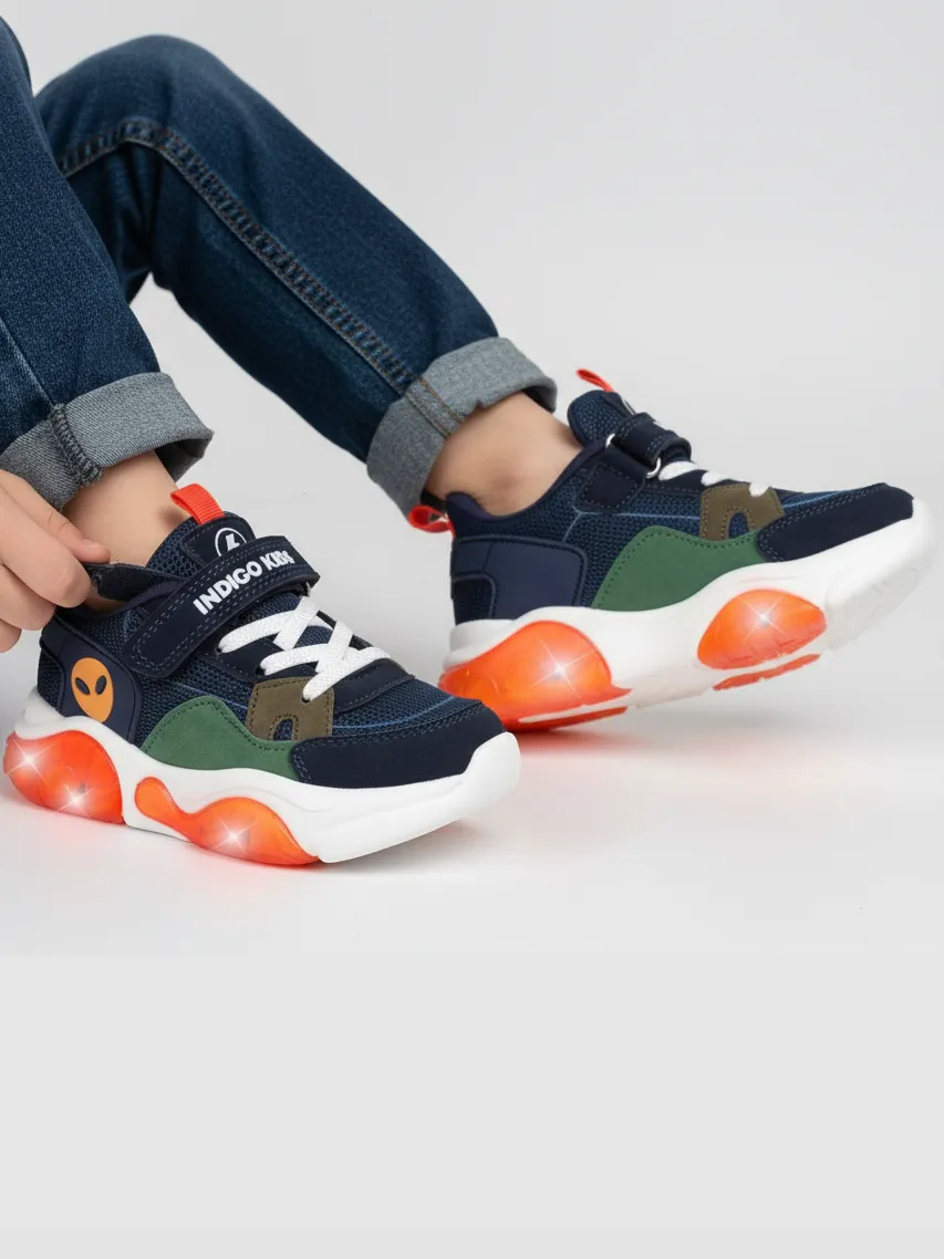 Детские летние кроссовки INDIGO KIDS — удобная обувь для повседневной носки, активного отдыха и спорта. Мерцающая разноцветная подошва со светодиодами делает модель особенно привлекательной для детей. Верх выполнен из текстиля с вставками из экокожи, что обеспечивает лёгкость, воздухопроницаемость и износостойкость.