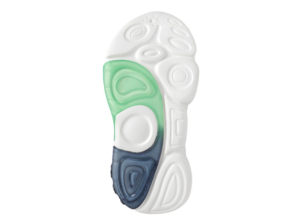 Хлопковая подкладка и съёмная анатомическая хлопковая стелька создают комфортный микроклимат внутри обуви. Лёгкая амортизирующая подошва из ЭВА со вставками из ТЭП устойчива к истиранию и снижает ударную нагрузку при ходьбе. Кроссовки фиксируются эластичным шнурком и ремнём на липучке, подходят для средней и широкой стопы с высоким подъёмом.