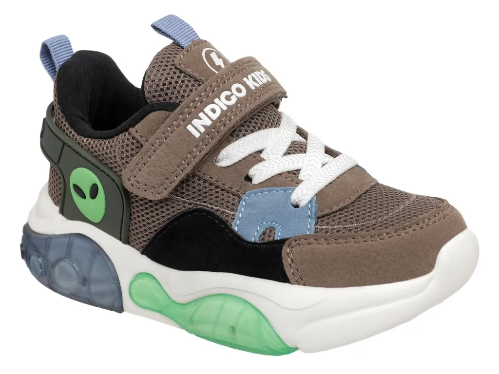 Детские летние кроссовки INDIGO KIDS — удобная обувь для повседневной носки, активного отдыха и спорта. Мерцающая разноцветная подошва со светодиодами делает модель особенно привлекательной для детей. Верх выполнен из текстиля с вставками из экокожи, что обеспечивает лёгкость, воздухопроницаемость и износостойкость.