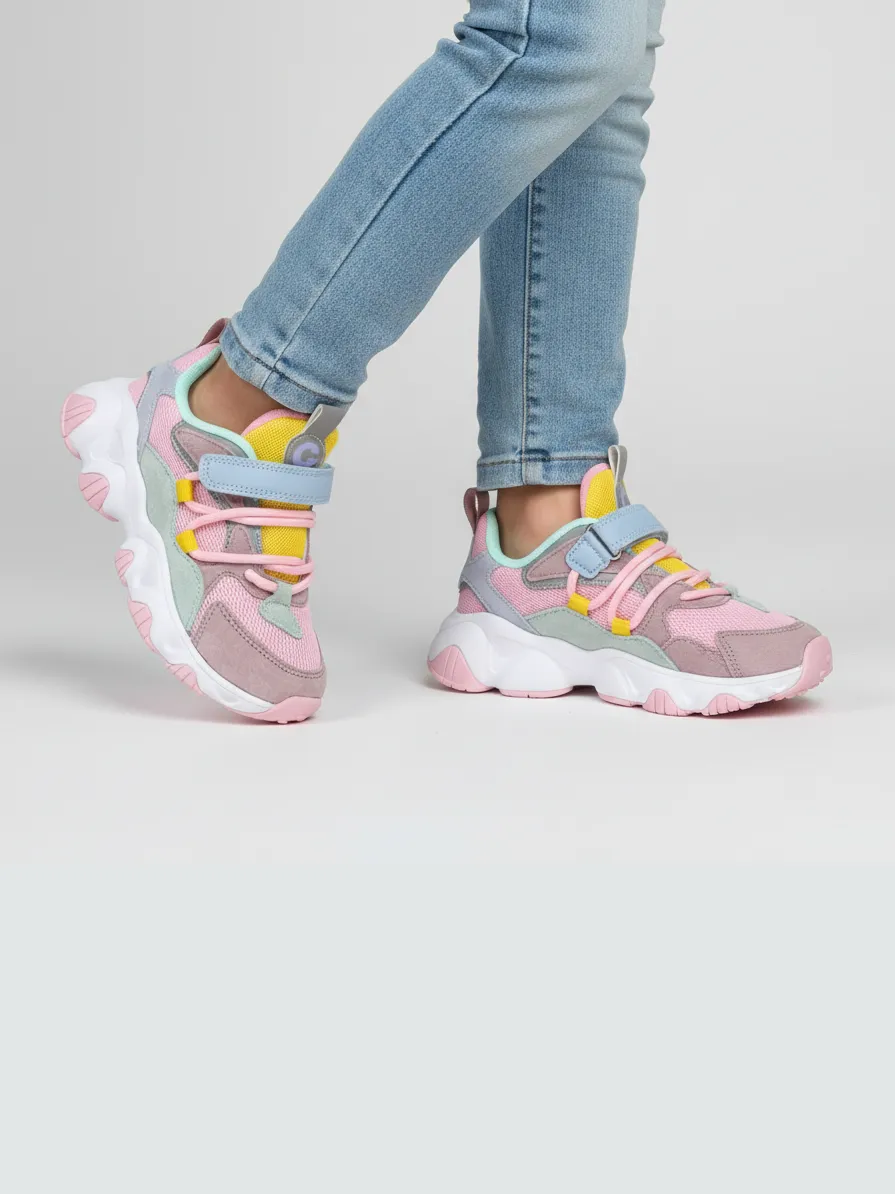 Детские летние кроссовки INDIGO KIDS для девочек — удобная обувь для повседневной носки и активного отдыха. Модель выполнена из сочетания натуральной кожи, экокожи и текстиля, что обеспечивает прочность, износостойкость, лёгкость ухода и хорошую вентиляцию.