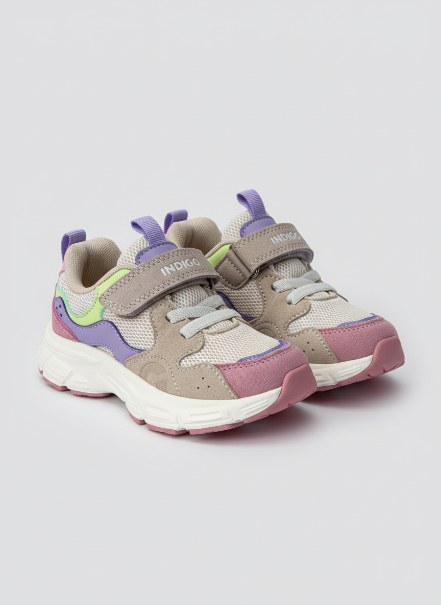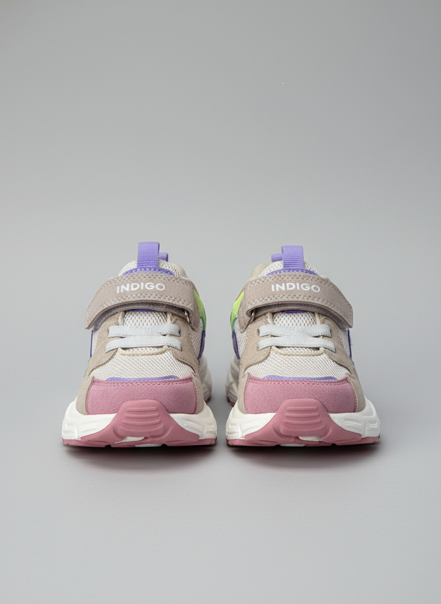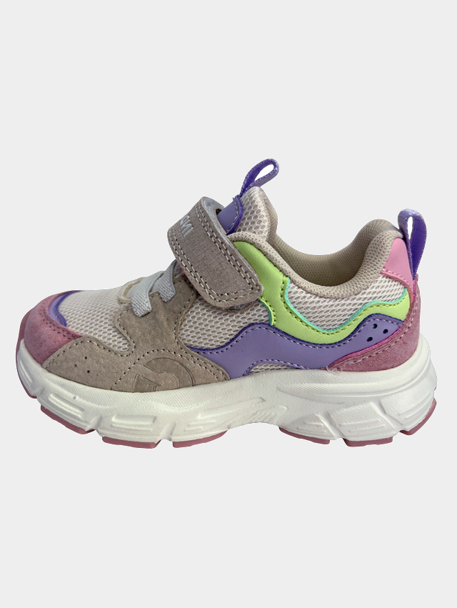 Модель выполнена в выразительном силуэте с контрастными материалами и яркими цветовыми акцентами. Сложная конструкция верха сочетает натуральную кожу, экокожу и текстиль: кожа и экокожа обеспечивают поддержку стопы и сохраняют форму, текстиль улучшает воздухообмен и мягкость. Мягкие элементы в области язычка и канта повышают комфорт посадки.