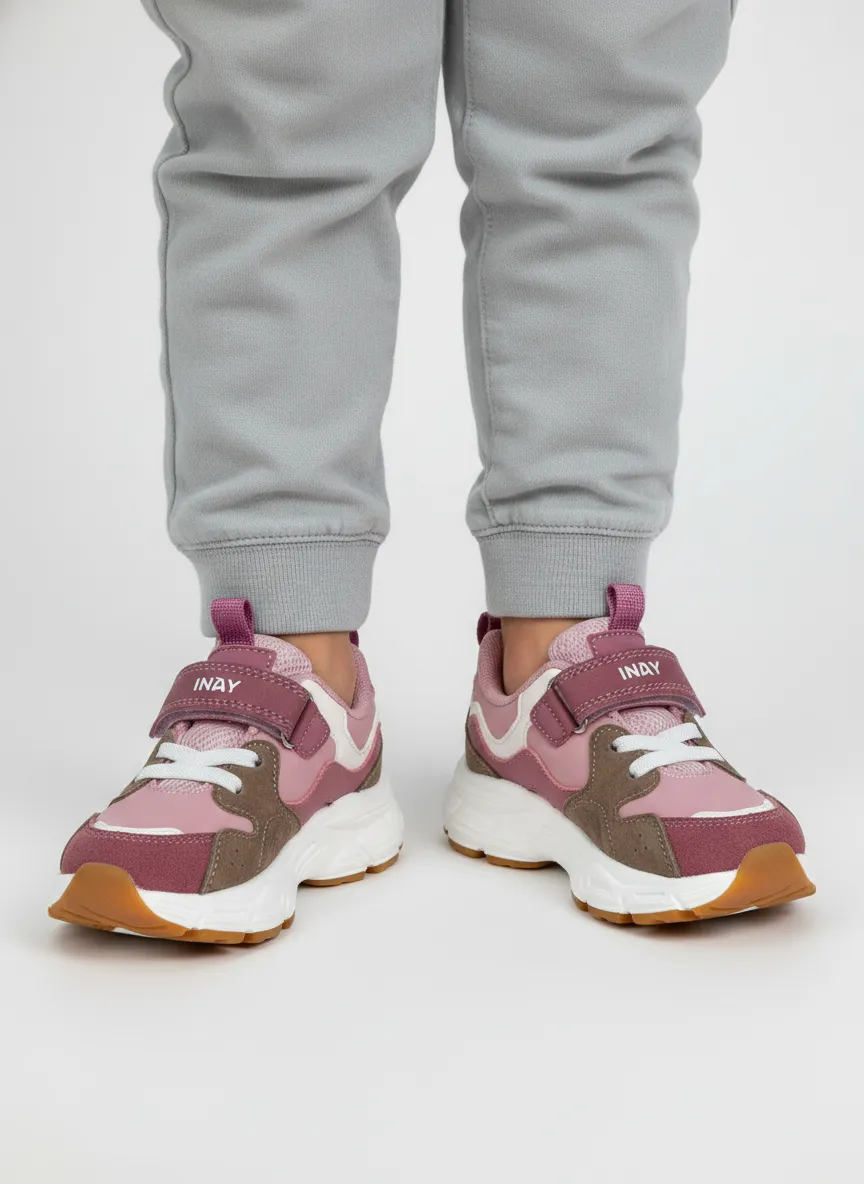 Модель выполнена в выразительном силуэте с контрастными материалами и яркими цветовыми акцентами. Сложная конструкция верха сочетает натуральную кожу, экокожу и текстиль: кожа и экокожа обеспечивают поддержку стопы и сохраняют форму, текстиль улучшает воздухообмен и мягкость. Мягкие элементы в области язычка и канта повышают комфорт посадки.