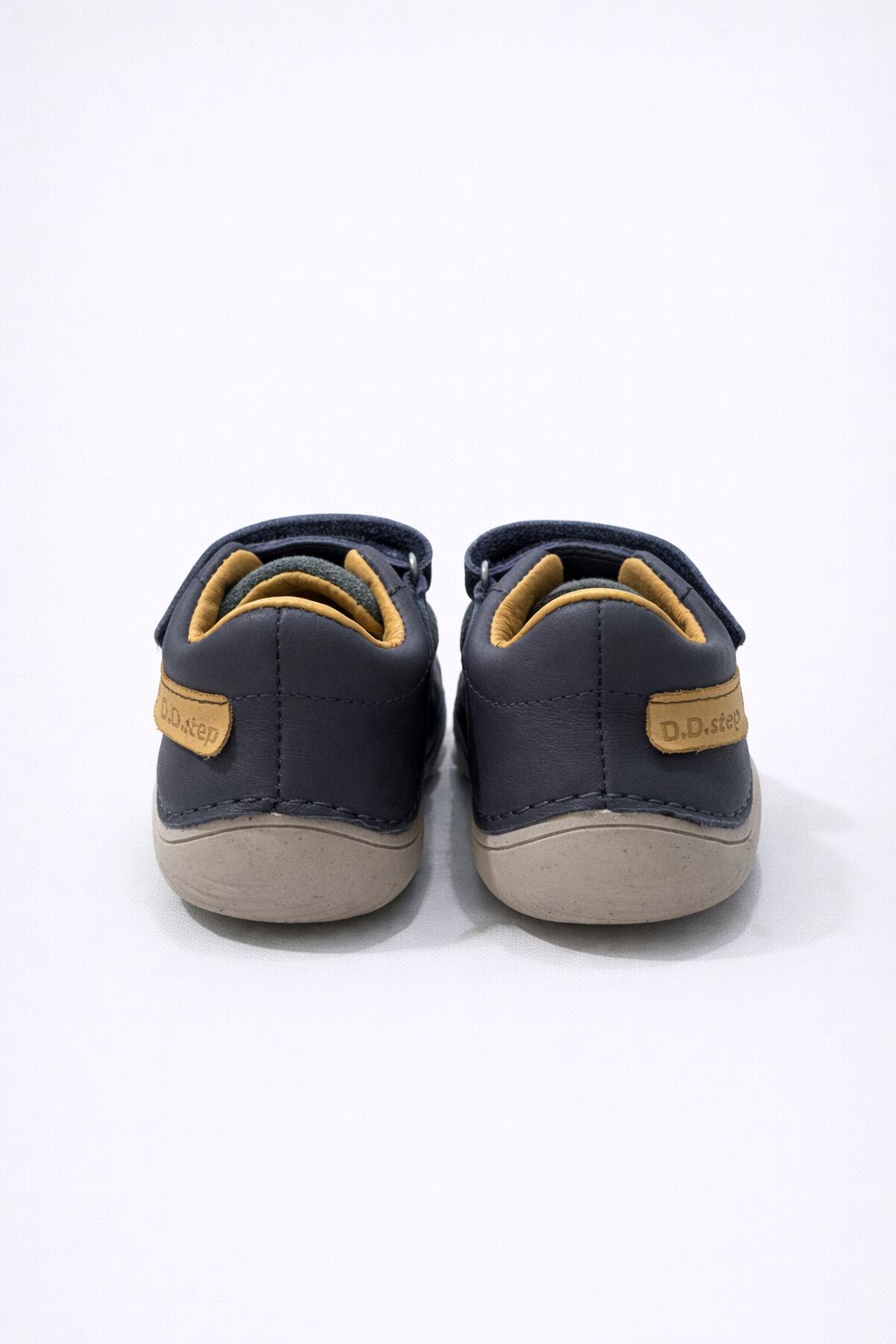 Верх выполнен из натуральной кожи — мягкой, эластичной и износостойкой, которая комфортно адаптируется к форме стопы. Подкладка из натуральной кожи обеспечивает приятный контакт с кожей ребёнка, способствует хорошей воздухопроницаемости и поддерживает комфорт в течение всего дня.