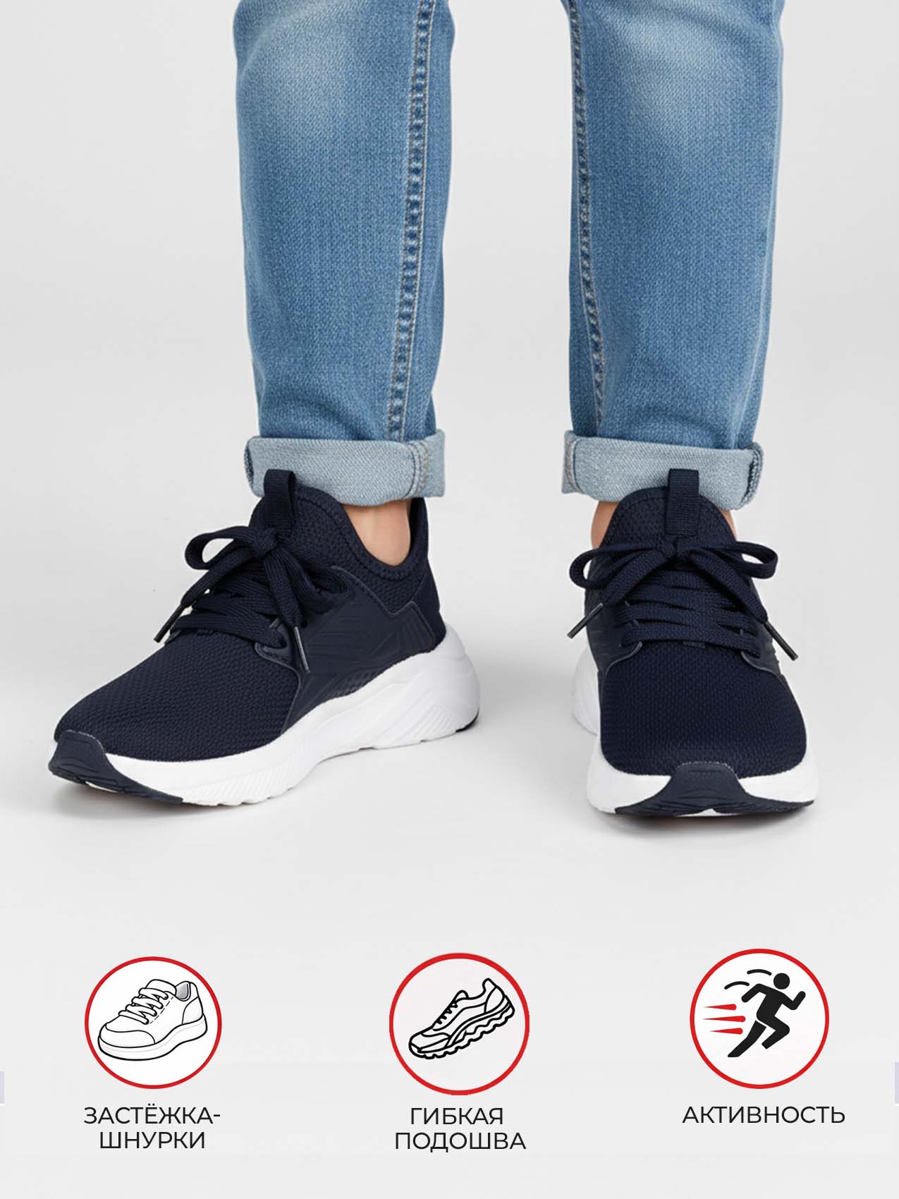 Лёгкая подошва из ЭВА эффективно амортизирует шаги, снижает нагрузку на стопу и делает движение более комфортным. Классическая шнуровка обеспечивает надёжную фиксацию и хорошую посадку по ноге. Модель подходит для прогулок, занятий и активного отдыха.
