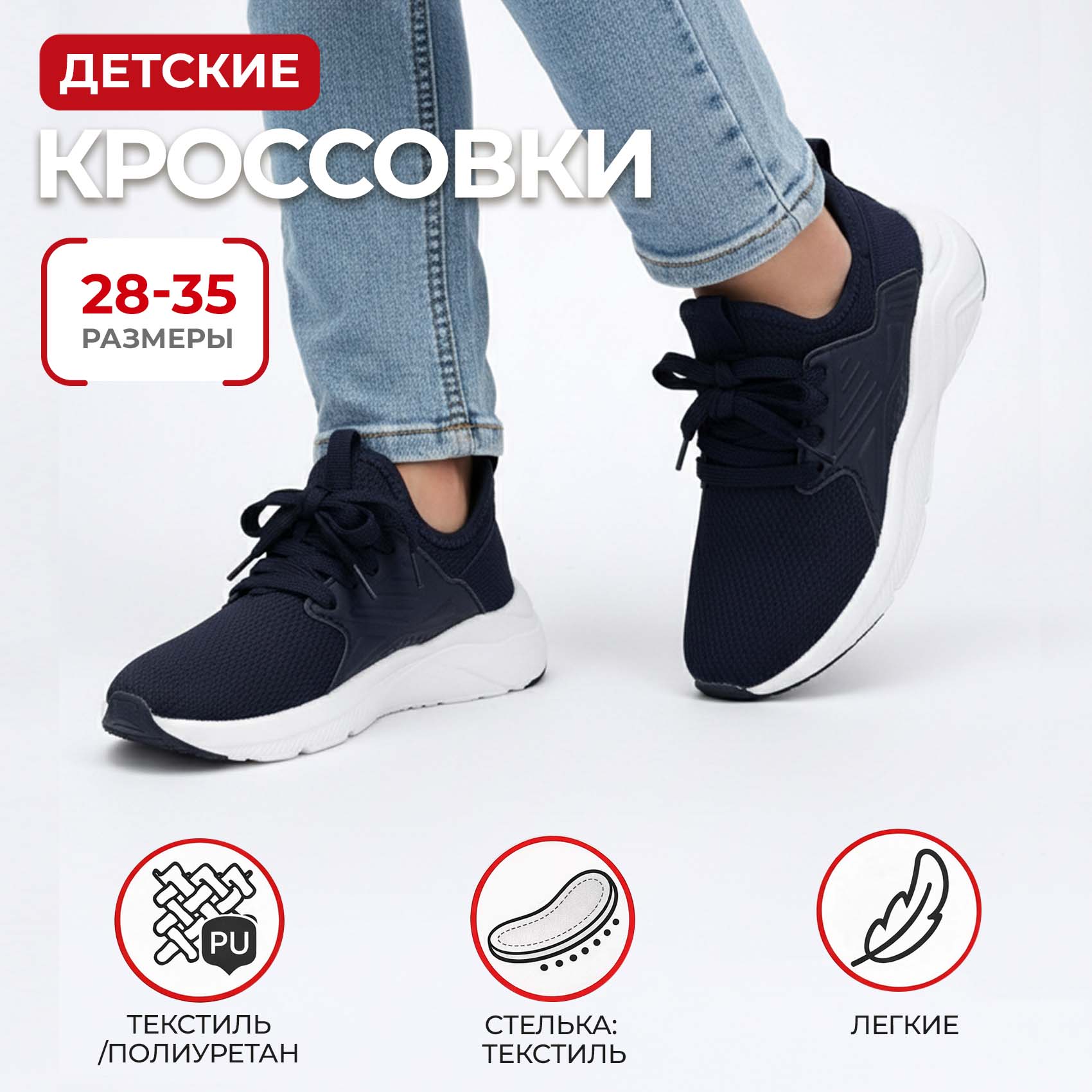 Лёгкие и удобные кроссовки, созданные для активных детей и ежедневной носки. Верх выполнен из сочетания текстиля и полиуретана — материал обеспечивает хорошую вентиляцию, устойчив к износу и помогает сохранить форму обуви даже при активной эксплуатации.