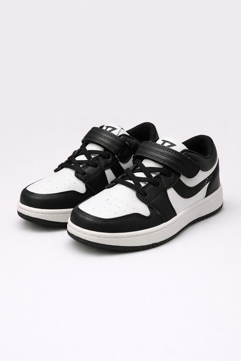 Кроссовки для мальчика — практичная и стильная модель для активной повседневной носки. Контрастное сочетание чёрного и белого цветов придаёт обуви современный спортивный вид, который отлично подойдёт для школы, прогулок и игр на свежем воздухе.