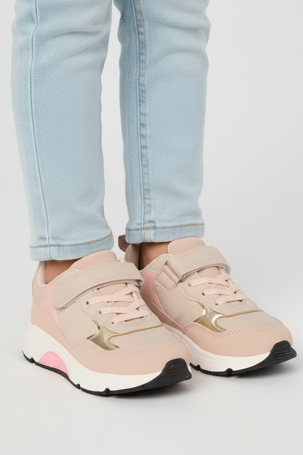 Эти кроссовки созданы для девочек, которые любят движение и стиль. Нежная бежево-розовая палитра с аккуратными золотистыми акцентами делает модель универсальной — она легко сочетается и с платьями, и с повседневными образами. Верх из прочного полиуретана хорошо держит форму и прост в уходе, а мягкая подкладка из полиэстера обеспечивает комфорт в течение всего дня. Удобная застёжка на липучке в сочетании со шнуровкой помогает быстро надевать обувь и надёжно фиксирует стопу. Амортизирующая подошва из ТПР снижает нагрузку при ходьбе и активных играх, обеспечивая устойчивость и уверенный шаг. Преимущества модели: —стильный дизайн с аккуратными декоративными элементами; —комфортная посадка и мягкая внутренняя подкладка; —удобная липучка для быстрого надевания; —лёгкая и устойчивая подошва для активного дня. Идеальный выбор для прогулок, школы и активного отдыха — кроссовки, в которых красиво, удобно и легко двигаться. |