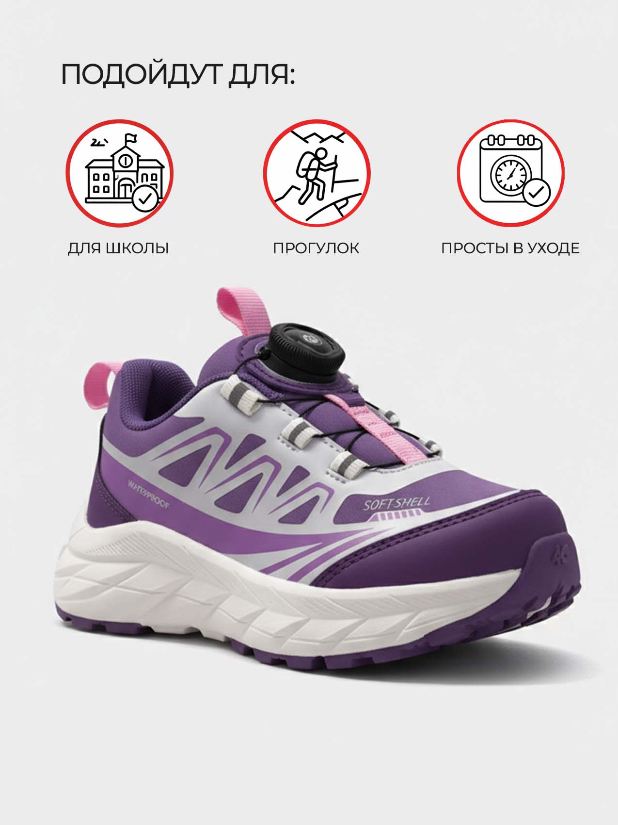 Мягкая текстильная подкладка обеспечивает комфорт при носке, а лёгкая подошва из филона с вставками из ТПР хорошо амортизирует, не скользит и выдерживает активную нагрузку. Удобная система фиксации с поворотным механизмом позволяет быстро и надёжно зафиксировать обувь на ноге без шнурков.