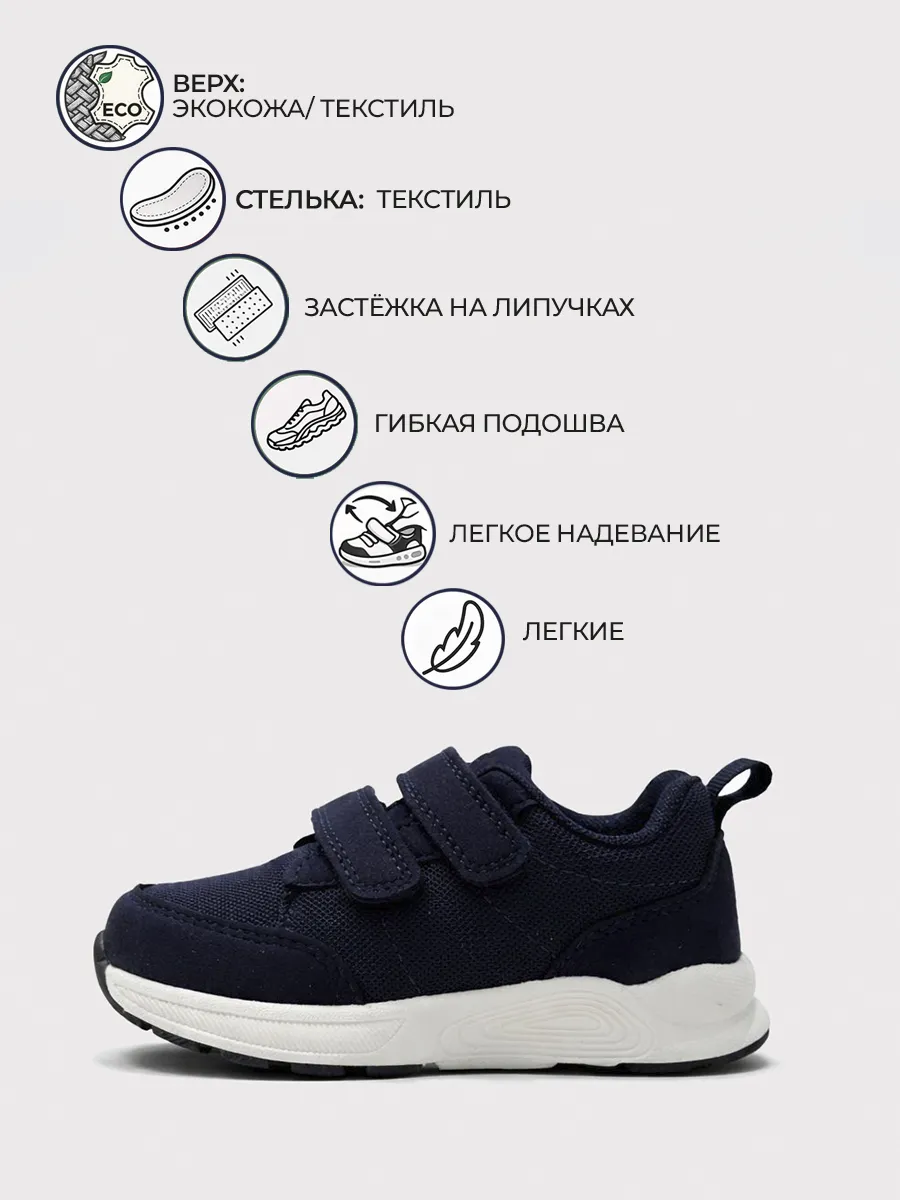 Мягкая текстильная подкладка создаёт приятные ощущения при носке и подходит для длительного использования. Подошва из ТПР отличается гибкостью, износостойкостью и хорошим сцеплением с поверхностью, что особенно важно для активных детей. Двойная застёжка на липучках позволяет быстро надевать и снимать обувь, надёжно фиксируя её на ноге.