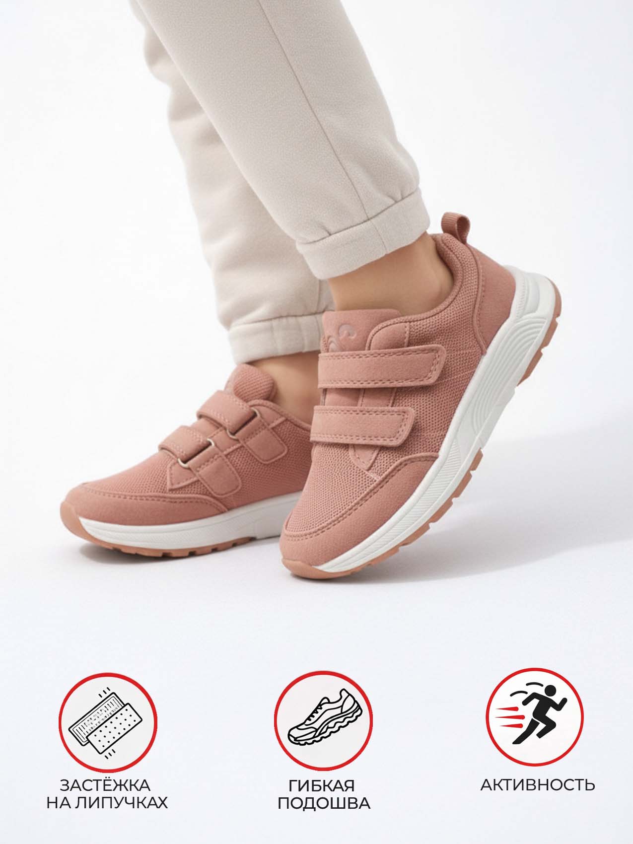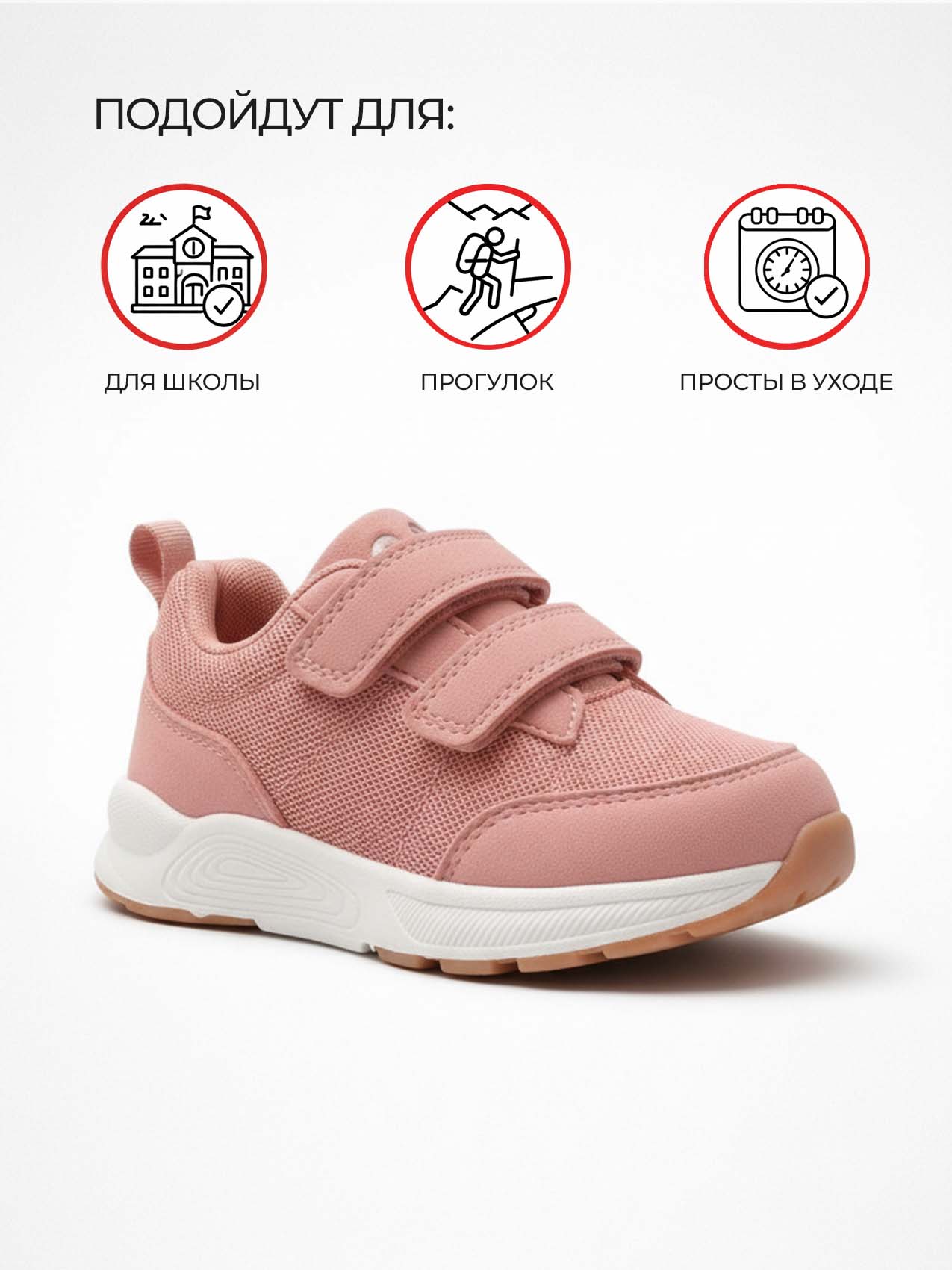 Мягкая текстильная подкладка создаёт приятные ощущения при носке и подходит для длительного использования. Подошва из ТПР отличается гибкостью, износостойкостью и хорошим сцеплением с поверхностью, что особенно важно для активных детей. Двойная застёжка на липучках позволяет быстро надевать и снимать обувь, надёжно фиксируя её на ноге.