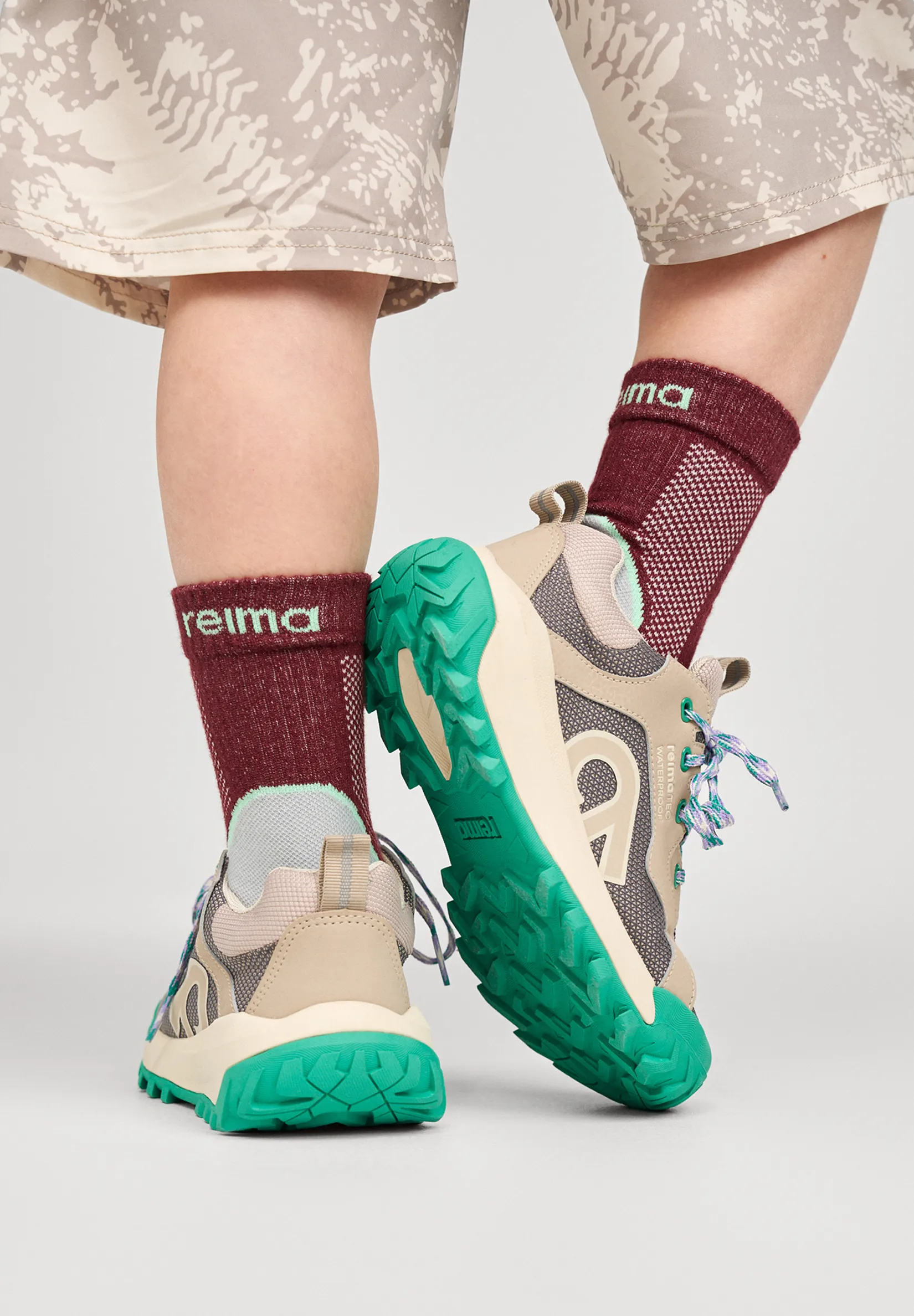 Водонепроницаемые кроссовки подойдут для активных прогулок ребёнка в межсезонье, когда важны комфорт и защита от влаги. Конструкция с водонепроницаемым внутренним ботинком и мембраной с проклеенными швами помогает сохранять ноги сухими в дождливую погоду. Подошва Reima Rolling Steps смягчает удары и способствует плавному перекату шага, снижая нагрузку при ходьбе. Съёмные формованные стельки Happy Fit с подкладкой из джерси позволяют легко подобрать правильный размер и обеспечивают дополнительную вентиляцию. Защитный носок повышает износостойкость, классическая шнуровка обеспечивает надёжную фиксацию, а светоотражающие элементы улучшают видимость в условиях слабого освещения.