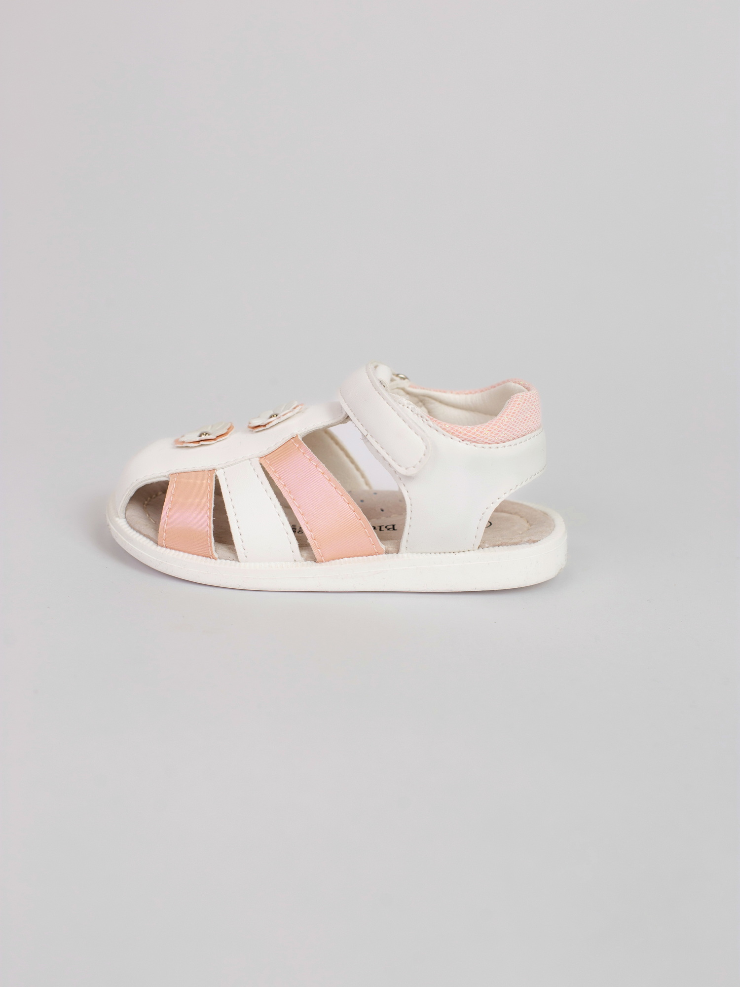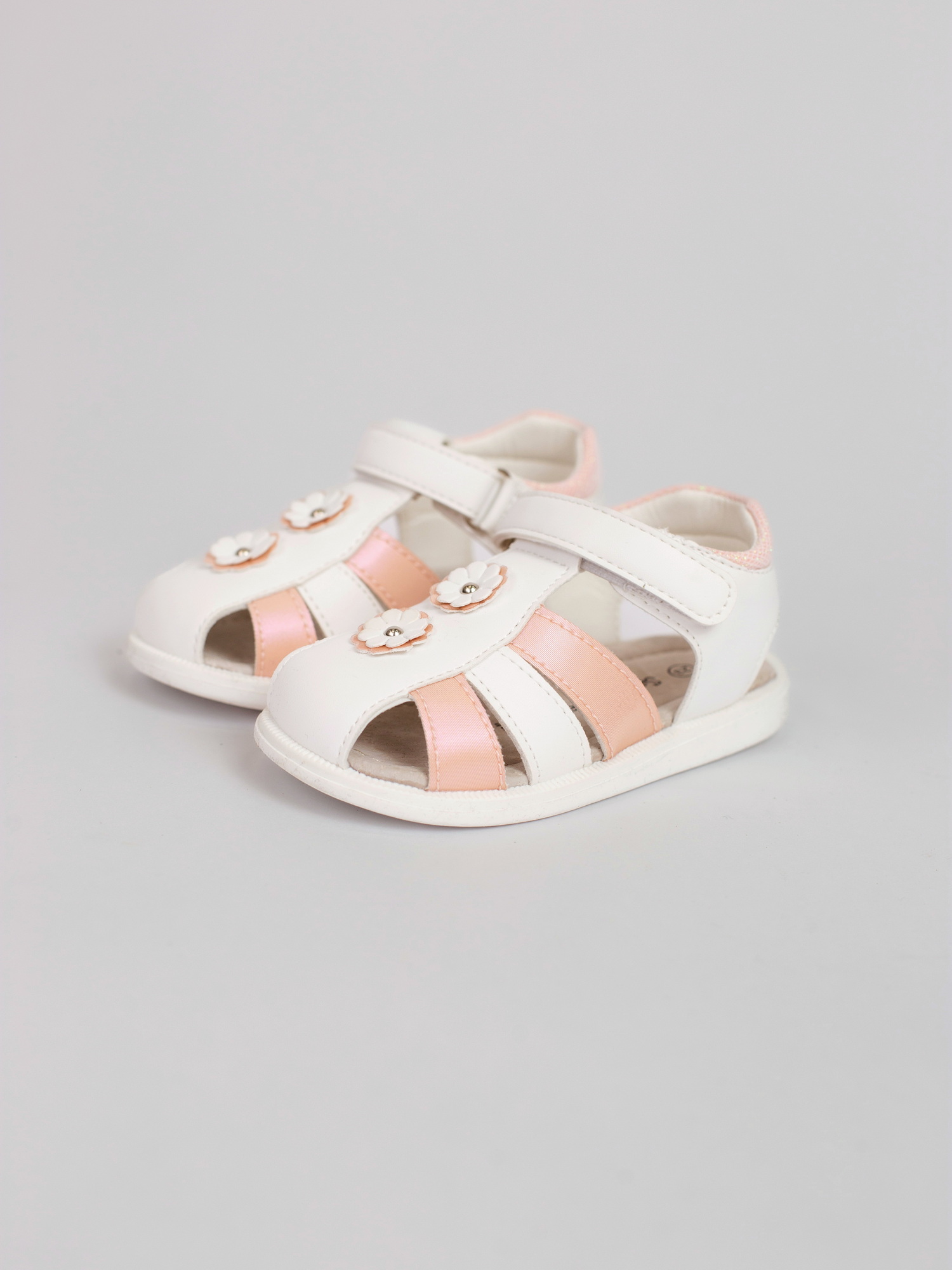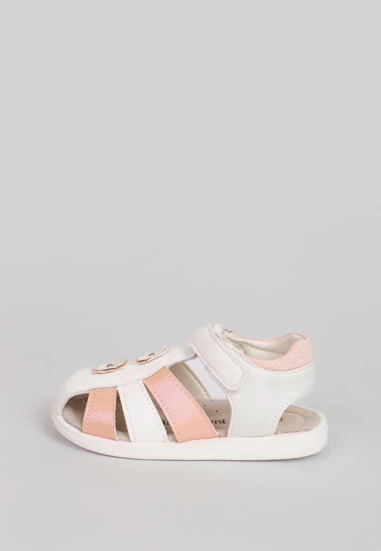 Сандалии для девочек. Удобная анатомическая стелька. Комфортная посадка с регулятором объема ножки на липучке. Закрытый перед для защиты пальчиков от ударов. Открытые ремешки для вентиляции. Нежная нейтральная расцветка и дизайн для любого образа и случая.