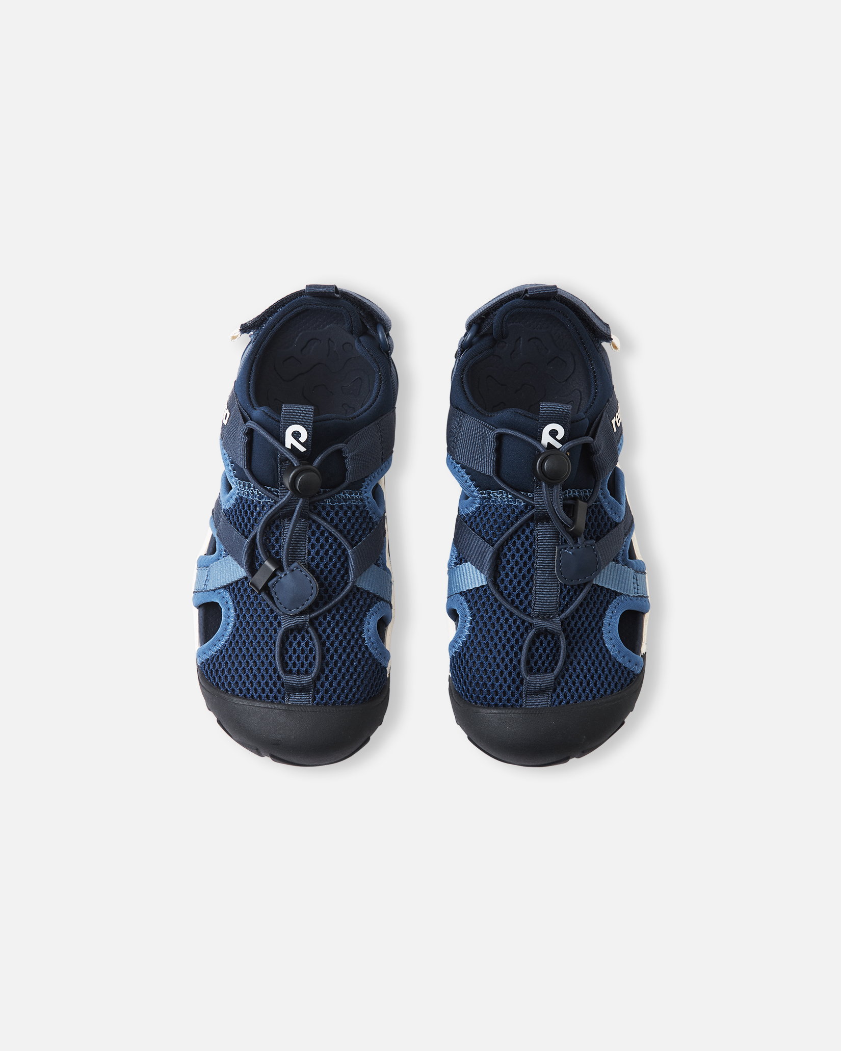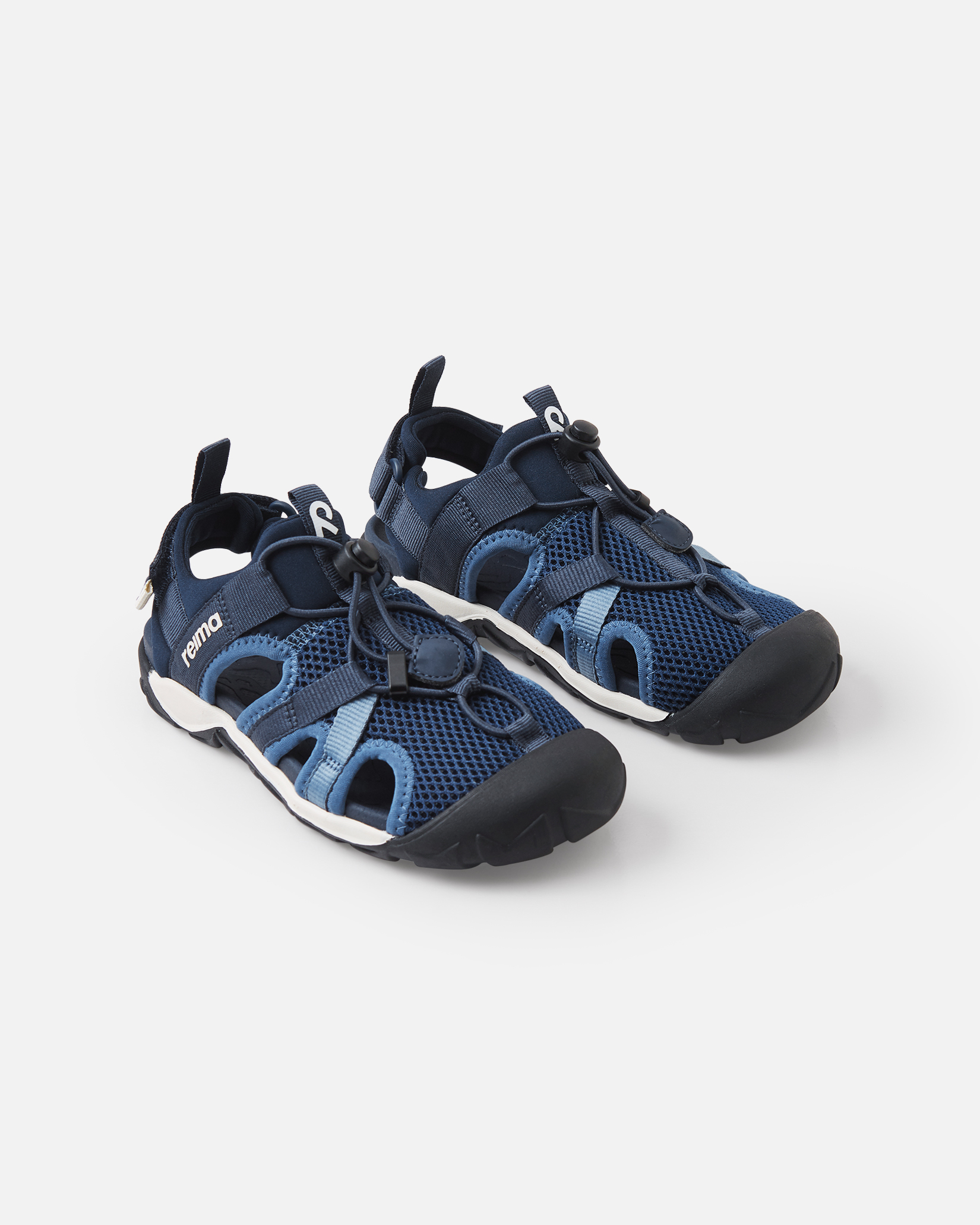 Сандалии подойдут для активных прогулок и повседневного использования в тёплую погоду, когда важны комфорт и износостойкость. Эластичные и прочные материалы хорошо переносят активную нагрузку, а эластичная шнуровка облегчает надевание и обеспечивает надёжную фиксацию на ноге. Резиновая подошва с промежуточным слоем CMEVA отвечает за амортизацию и комфорт при ходьбе, а защитный носок помогает защитить пальцы во время активных игр. Петли для надевания делают модель удобной в использовании, а продуманная конструкция подходит для ежедневного движения и прогулок на улице.