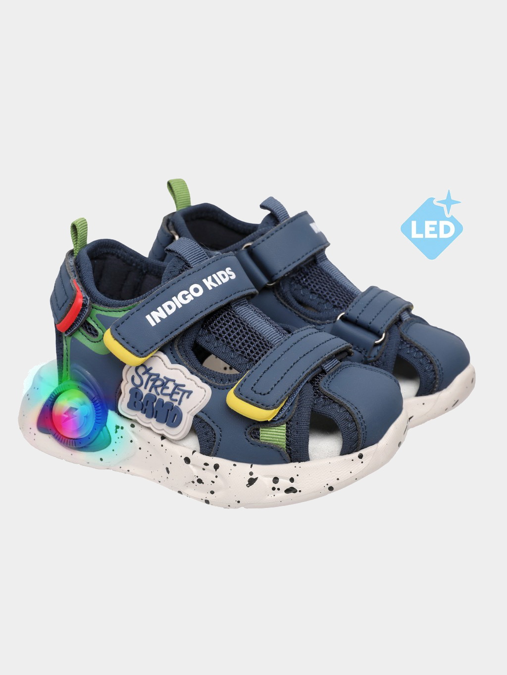 Лёгкие сандалии INDIGO KIDS с закрытым носом и подсветкой.