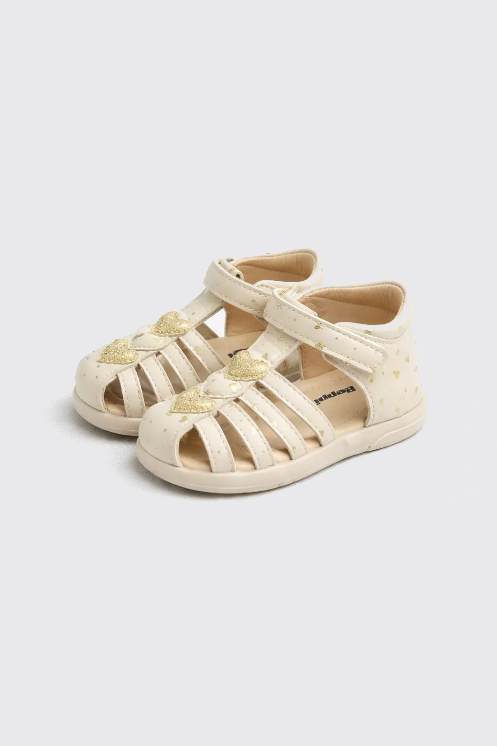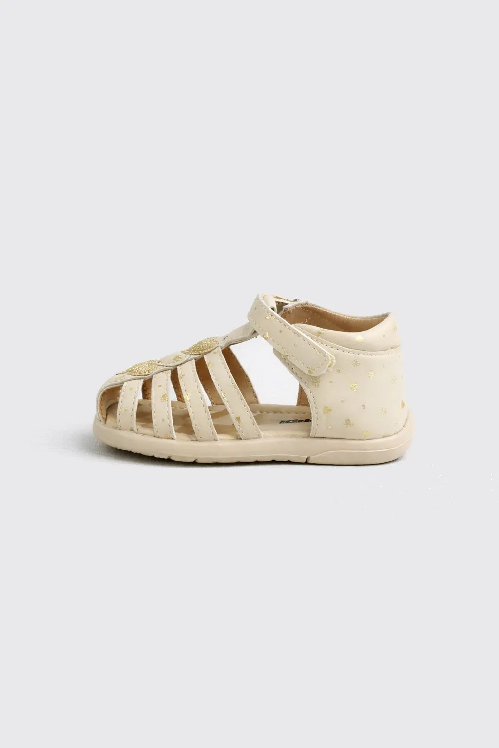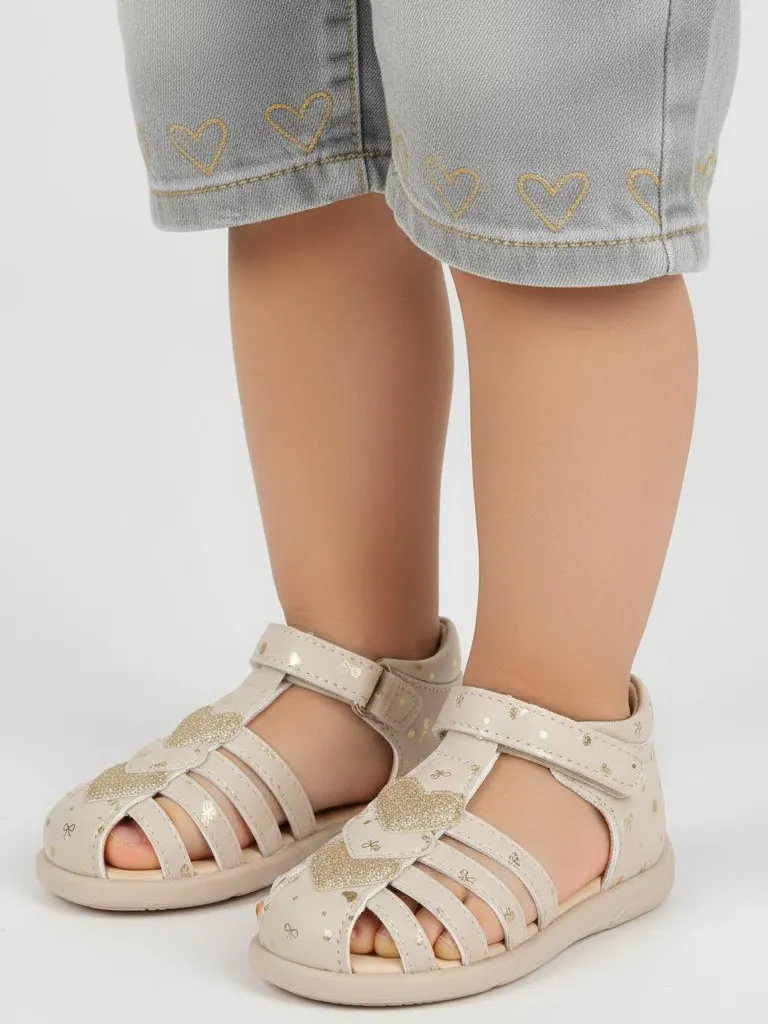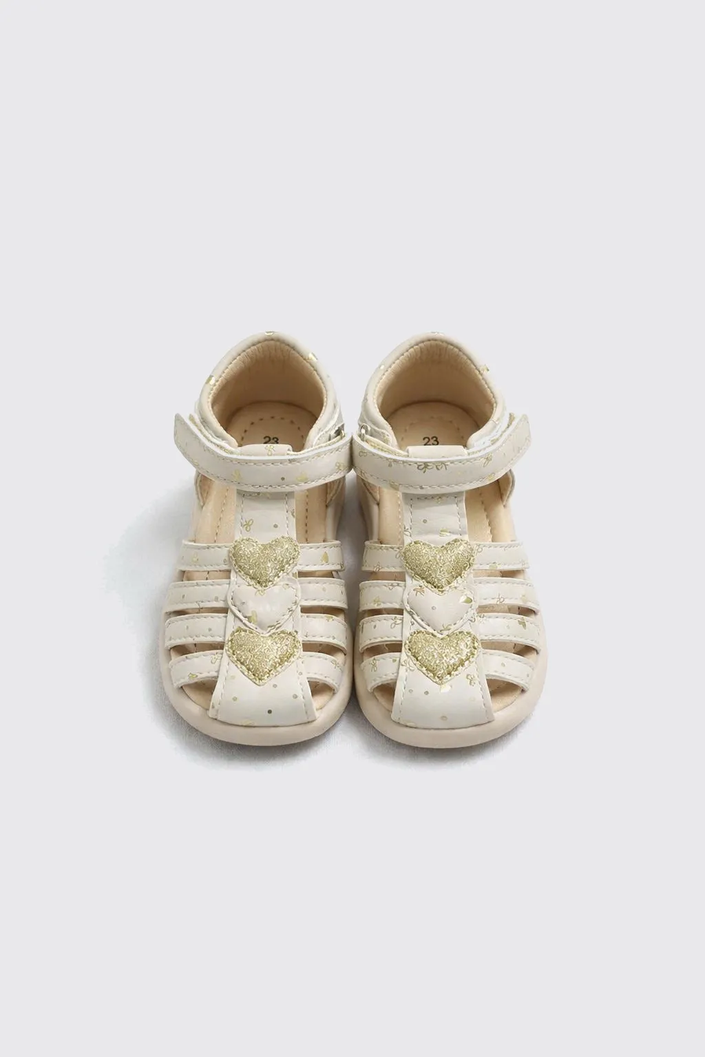 Очаровательные сандалии для девочек, идеально подходящие для летних прогулок и активных дней на свежем воздухе. Верх выполнен из экокожи, что делает обувь лёгкой и практичной, а её блестящий дизайн с золотистыми сердечками придаёт нежный и стильный вид. Подкладка из экокожи обеспечивает комфорт и мягкость, делая носку приятной в течение всего дня. Подошва из ТПР гибкая и устойчивая к скольжению, что гарантирует безопасность и удобство при каждом шаге. Эти сандалии подарят вашей малышке свободу движений и станут идеальными спутниками для её летних приключений! |