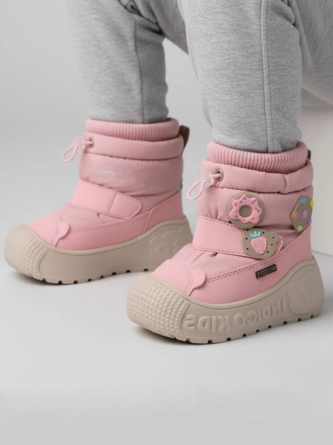 Зимние дутики INDIGO KIDS WATERPROOF для девочек — стильная и удобная модель с эксклюзивной фирменной подошвой INDIGO KIDS. Изготовлены с использованием мембранных материалов, которые не пропускают влагу внутрь и позволяют ногам дышать.