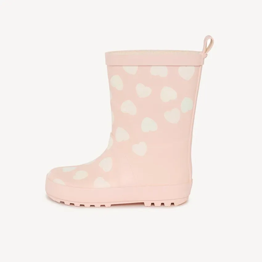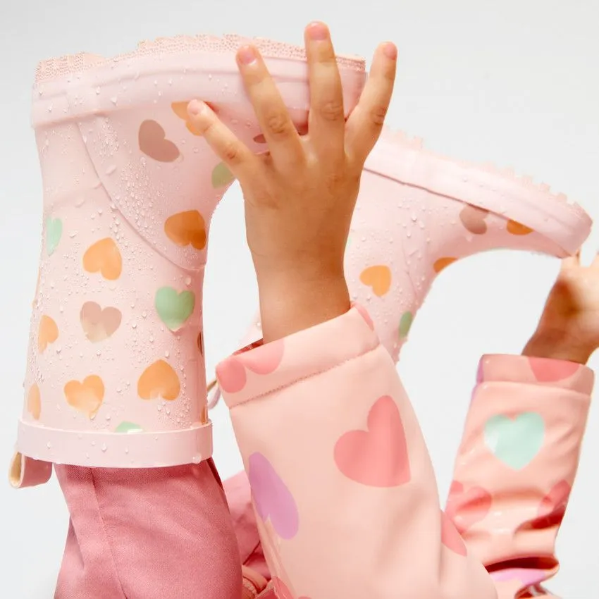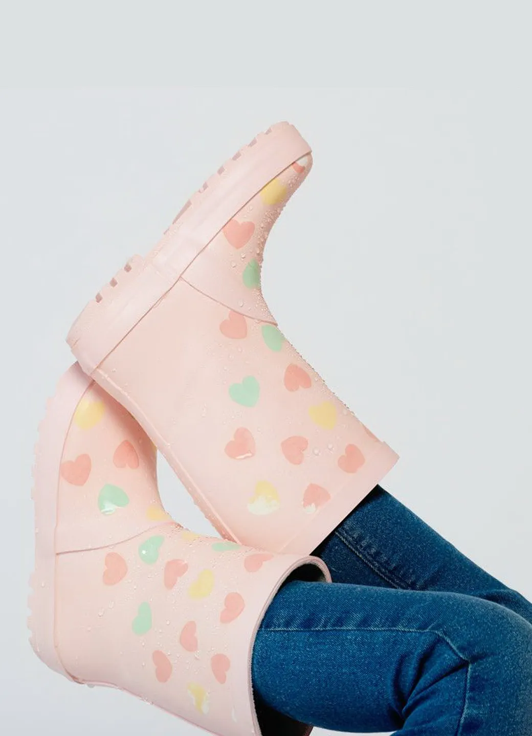 Яркие и удобные резиновые сапожки станут любимой обувью для дождливой погоды. Особенность модели — декоративные сердечки, которые меняют цвет при контакте с водой, превращая каждый шаг в маленькое чудо. Мягкая текстильная подкладка с добавлением хлопка обеспечивает комфорт во время носки, а прочная рифленая подошва из резины гарантирует надежное сцепление с поверхностью.