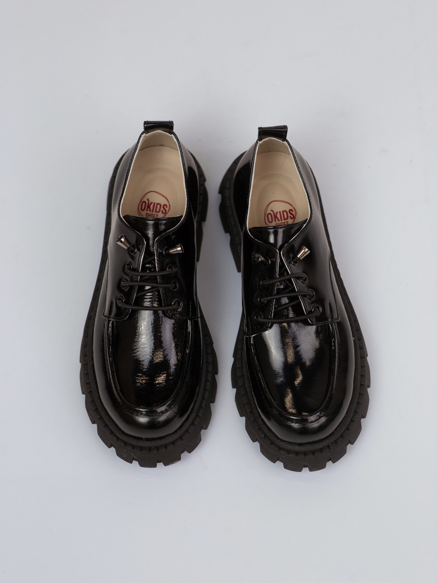 Стильные и удобные школьные туфли для девочки с мягкой и гибкой подошвой, обеспечивающей комфорт и лёгкость при ходьбе. Верх изготовлен из натуральной кожи — дышащего и износостойкого материала, который сохраняет комфорт в течение всего дня. Модель оснащена резинками-шнурками, имитирующими классическую шнуровку, что позволяет легко обуваться и обеспечивает надёжную фиксацию стопы. Подошва из прочной резины устойчива к скольжению и износу. Внутри — анатомическая стелька для правильного формирования стопы и снижения нагрузки на ноги. Идеальный выбор для активных школьных будней.