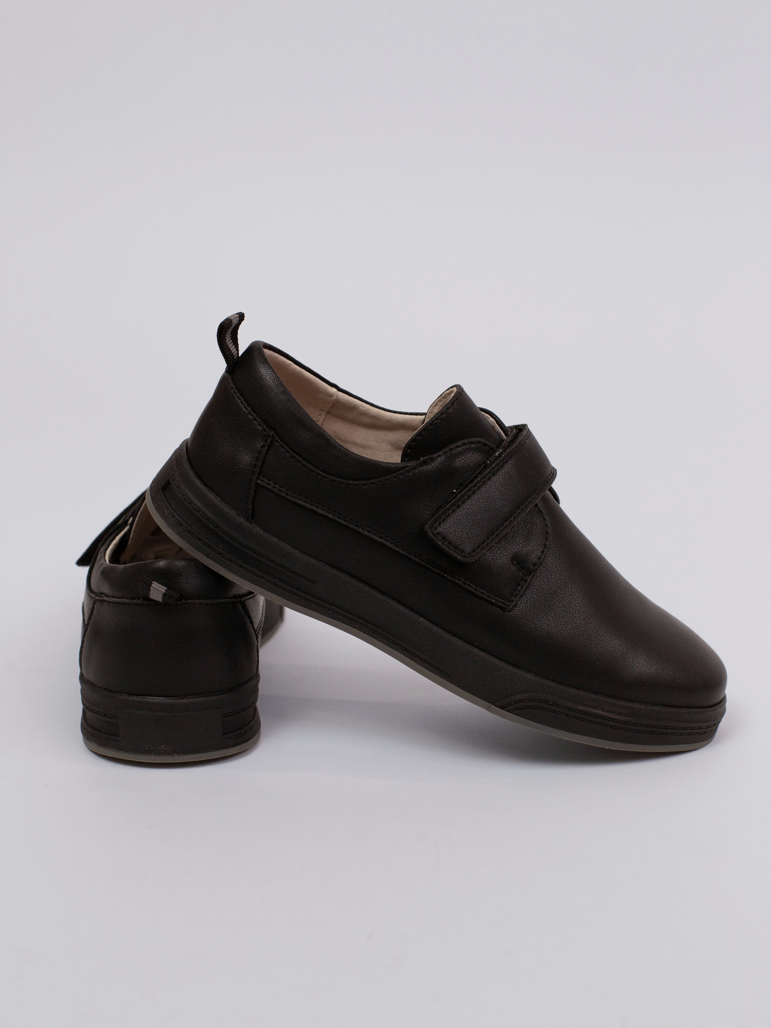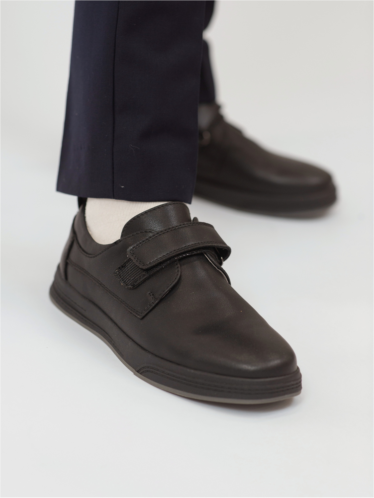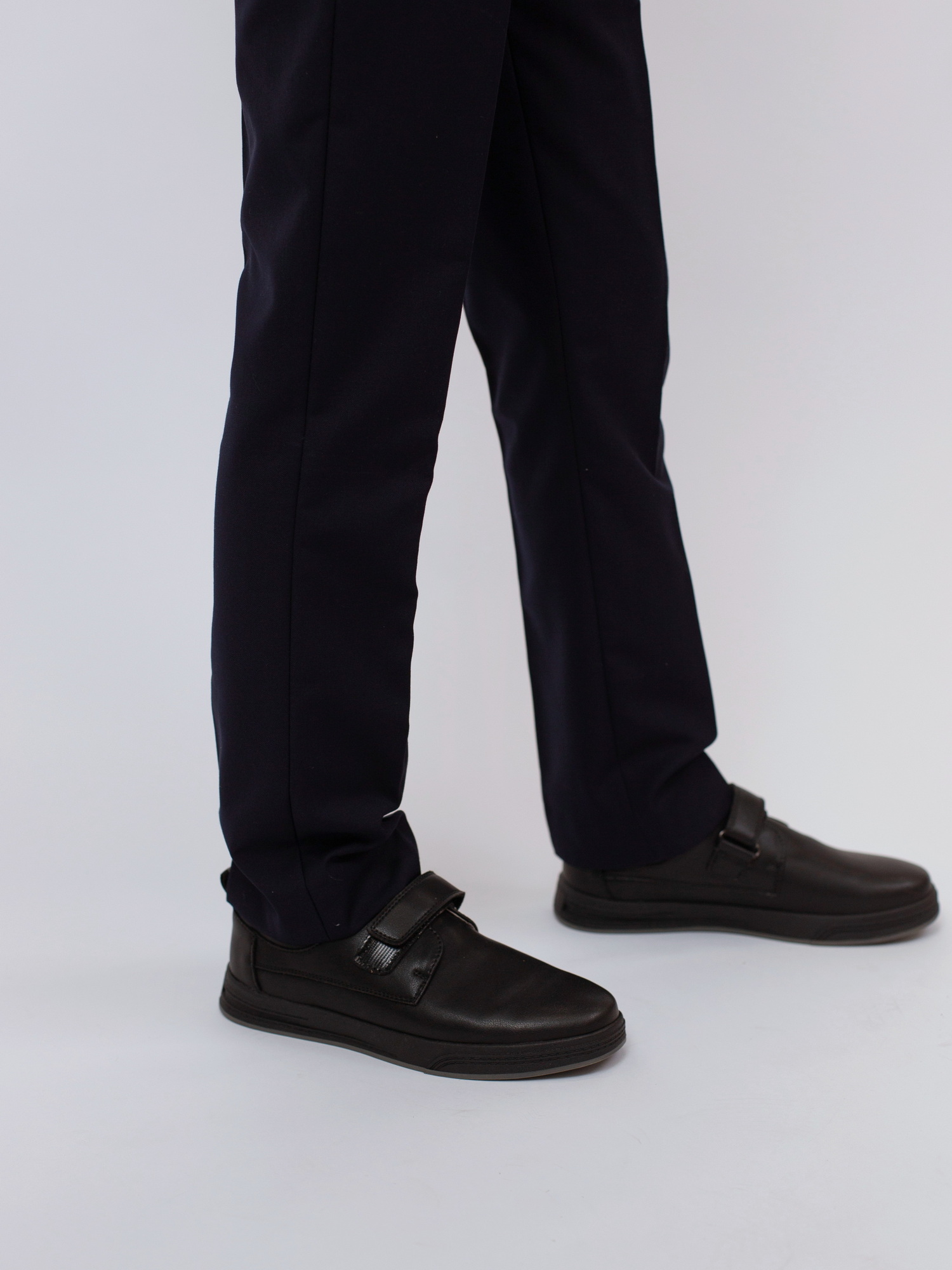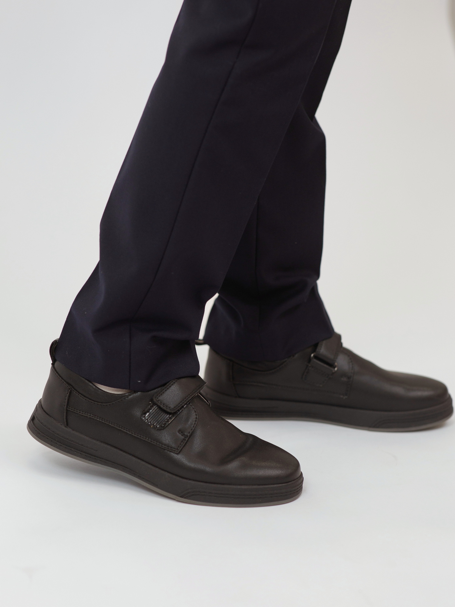 Школьные туфли для мальчика — удобная и практичная модель, идеально подходящая для повседневной носки в учебное время. Застёжка расположена в средней части туфель и выполнена в виде липучки — это значительно облегчает процесс обувания и снятия. Верх выполнен из натуральной кожи, подкладка и анатомическая стелька также из натуральной кожи, что обеспечивает комфорт, хорошую вентиляцию и гигиеничность в течение всего дня. Устойчивая подошва из ТПР (термопластичной резины) гарантирует надёжное сцепление и износостойкость. Сдержанный классический дизайн гармонично сочетается со школьной формой.