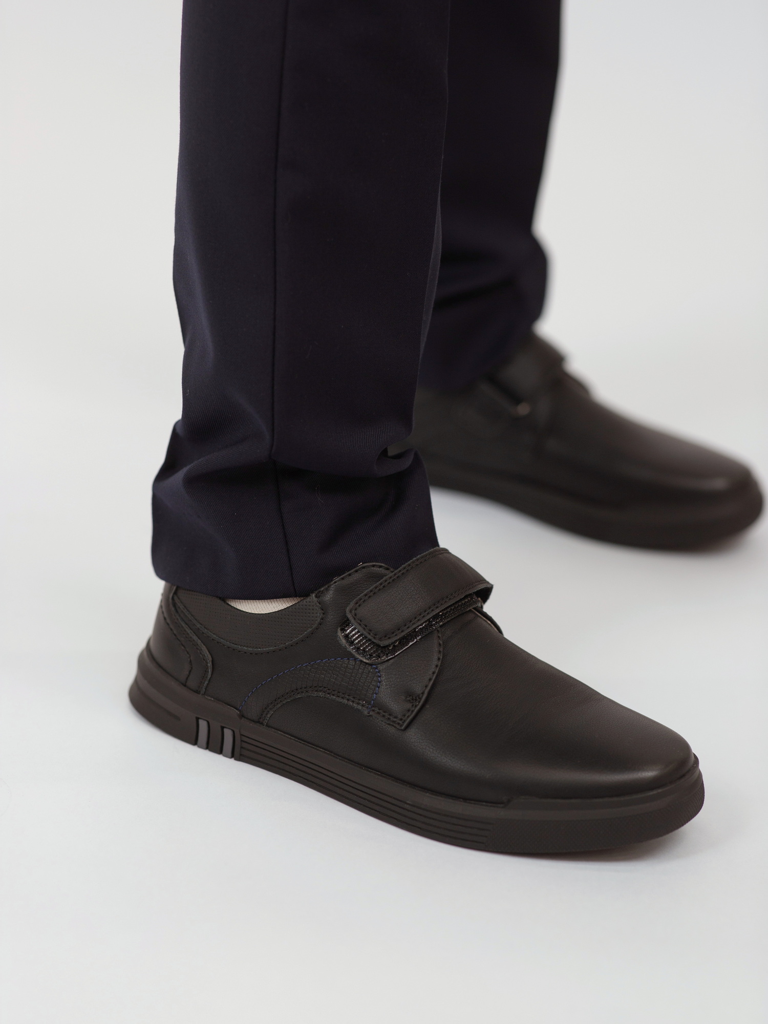 Школьные туфли для мальчика — удобная и практичная модель, идеально подходящая для повседневной носки в учебное время. Застёжка расположена в средней части туфель и выполнена в виде липучки — это значительно облегчает процесс обувания и снятия. Туфли имеют анатомическую стельку из натуральной кожи, которая обеспечивает комфорт в течение всего дня. Верх выполнен из высококачественной экокожи, устойчива к износу и легко очищается. Подошва изготовлена из ТПР (термопластичной резины), что обеспечивает отличное сцепление с поверхностью и устойчивость. Сдержанный классический дизайн гармонично сочетается со школьной формой.