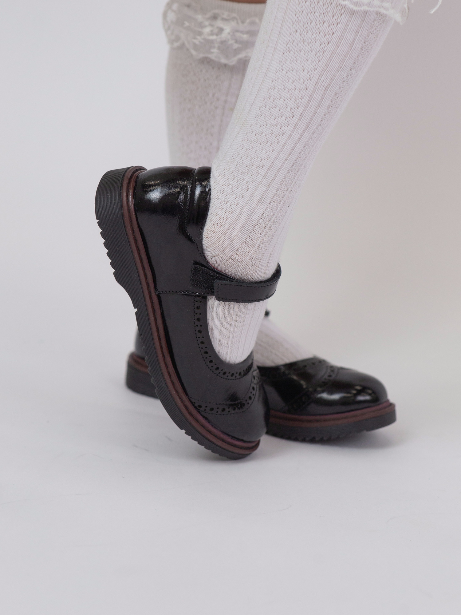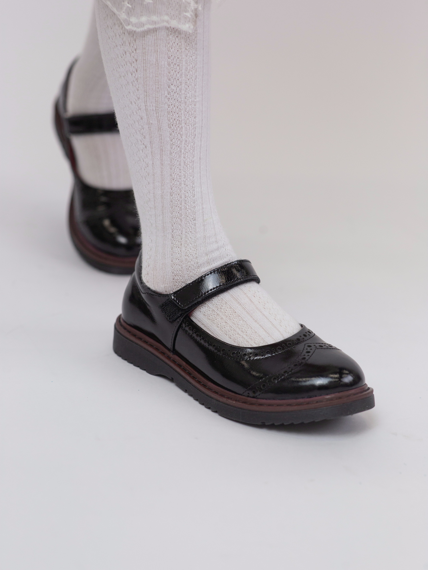 Элегантные и удобные школьные туфли для девочки, идеально подходящие для повседневной носки. Верх выполнен из натуральной кожи — прочного и дышащего материала, обеспечивающего комфорт в течение всего дня. Удобная застёжка-липучка позволяет легко надевать обувь и надёжно фиксирует её на ноге. Резиновая подошва устойчива к износу и скольжению, обеспечивая устойчивость при ходьбе. Внутри — анатомическая стелька, которая поддерживает правильное формирование стопы и снижает нагрузку на ноги. Отличный выбор для школы — практично, комфортно и надёжно.