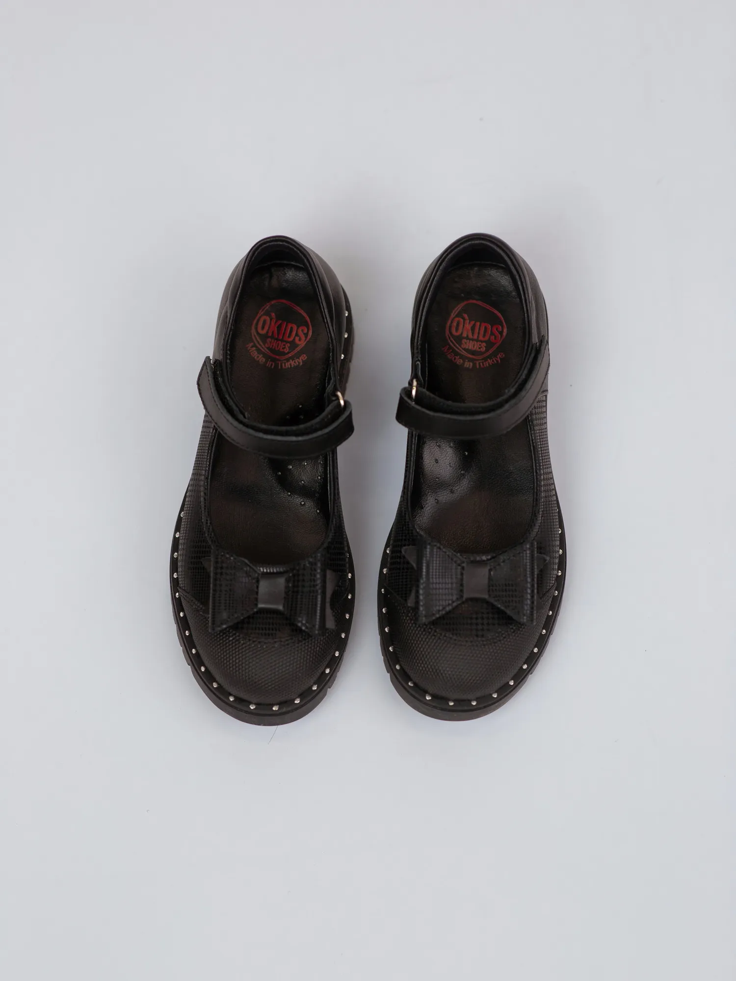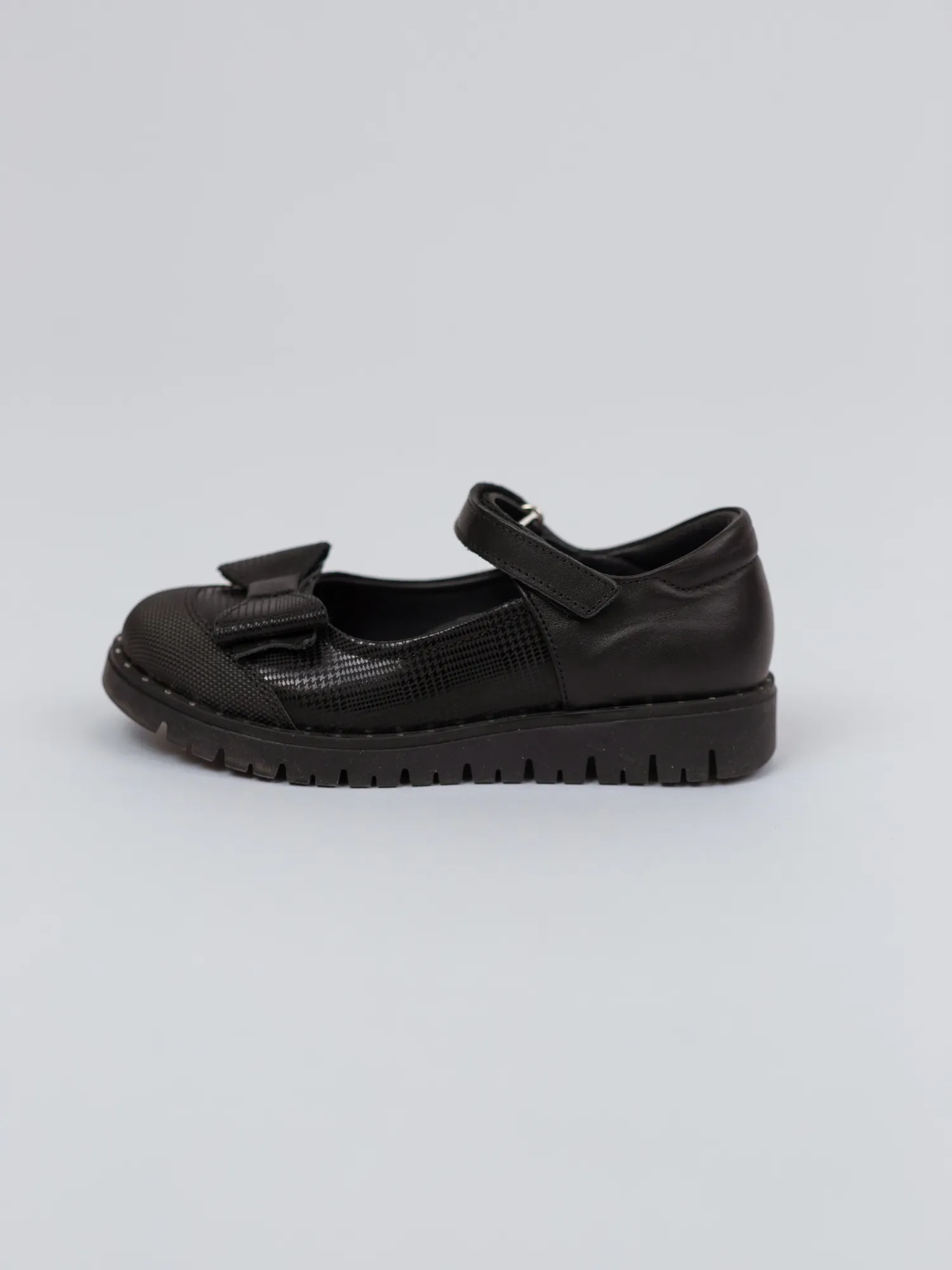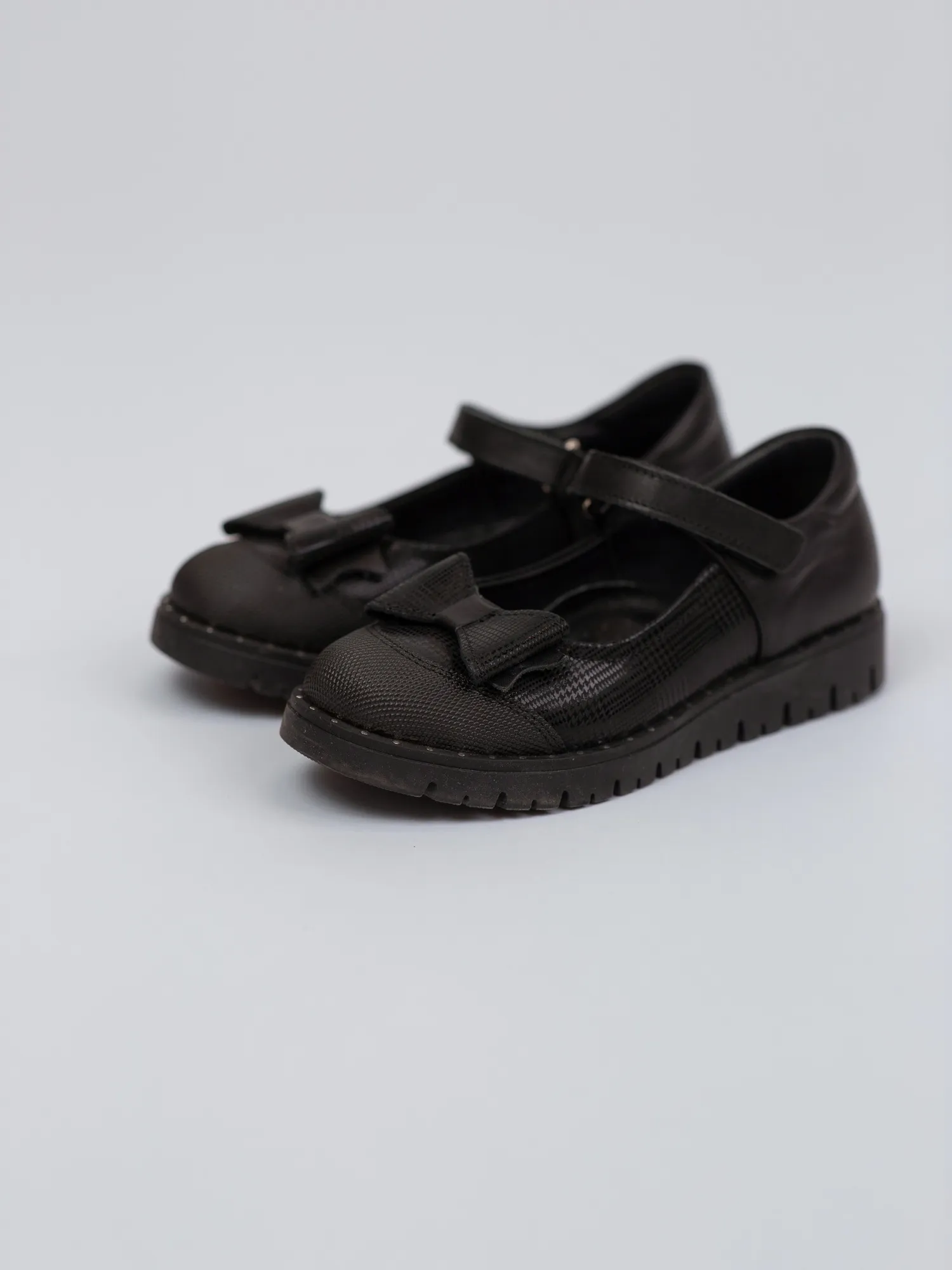 Элегантные и удобные школьные туфли для девочки с изящным бантиком по центру носка. Верх выполнен из натуральной кожи — прочного и дышащего материала, обеспечивающего комфорт при ежедневной носке. Удобная застёжка-липучка позволяет легко надевать обувь и надёжно фиксирует её на ноге. Резиновая подошва устойчива к износу и скольжению, обеспечивая устойчивость при ходьбе. Внутри — анатомическая стелька, которая поддерживает правильное формирование стопы и снижает нагрузку на ноги. Отличный выбор для школы — сочетание стиля и заботы о здоровье.