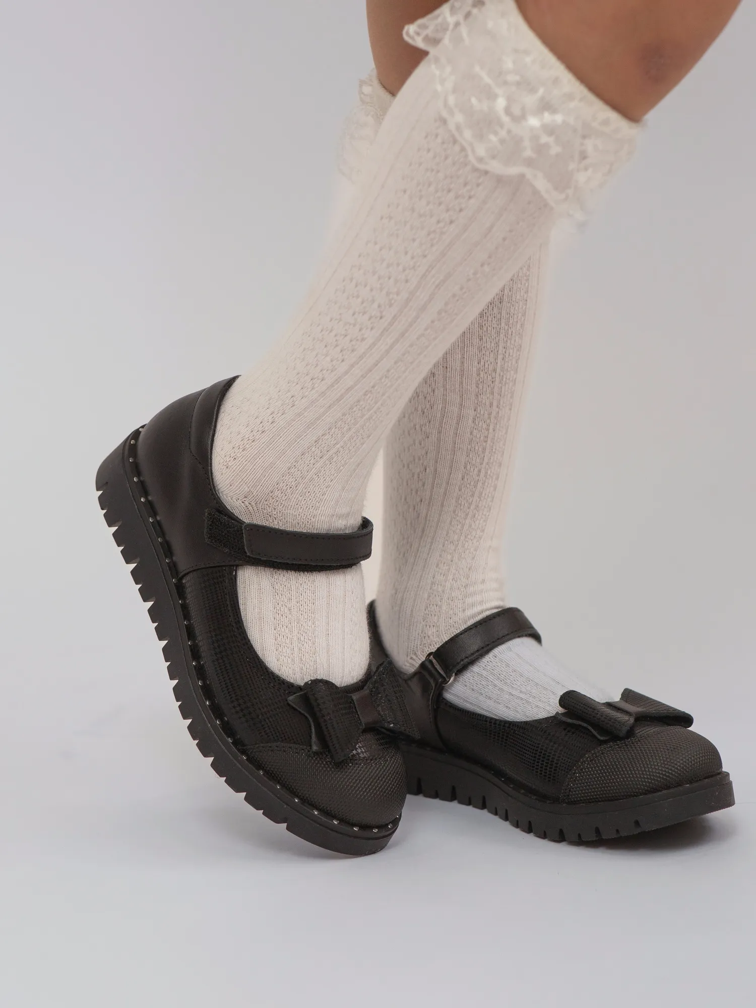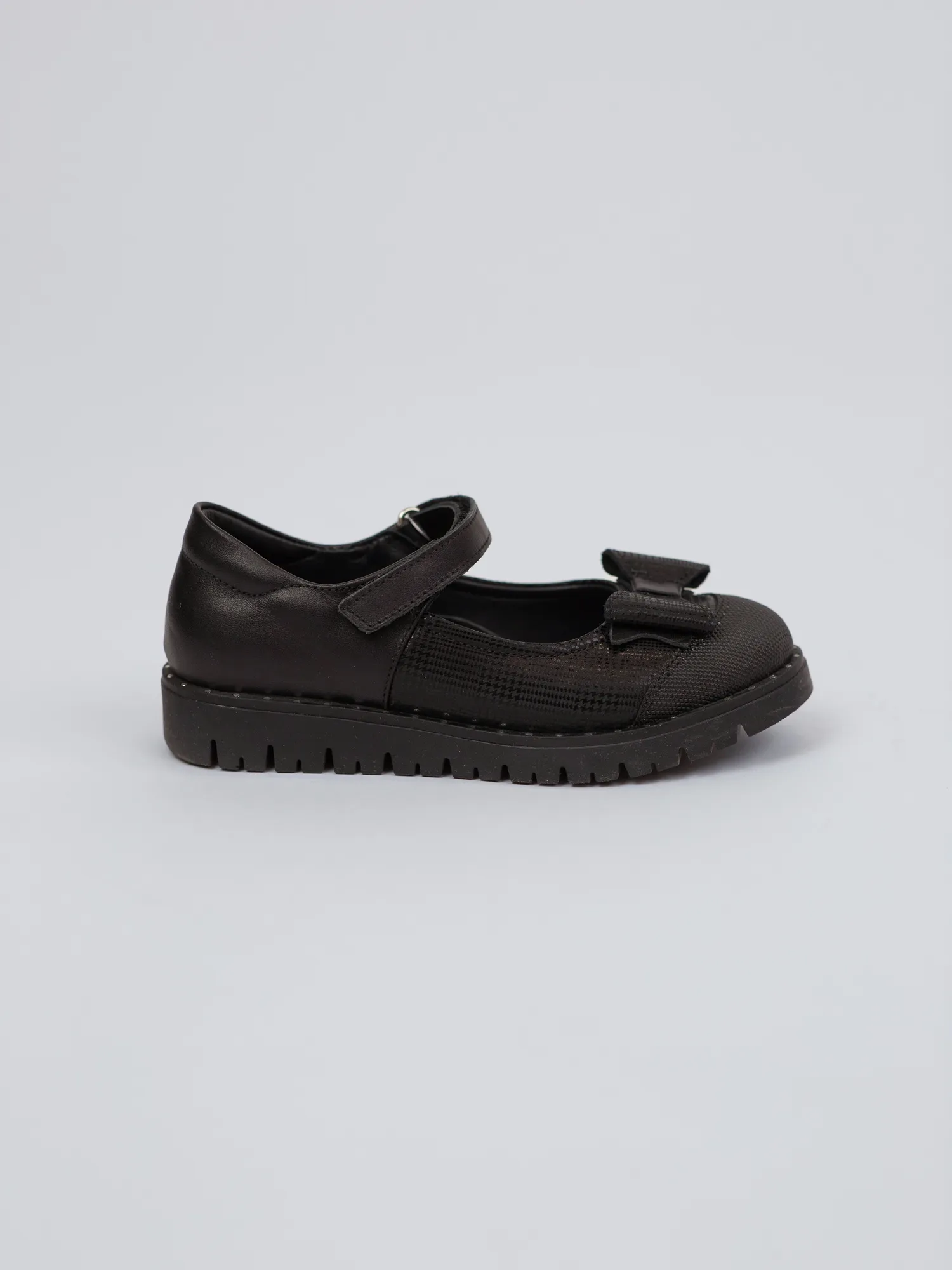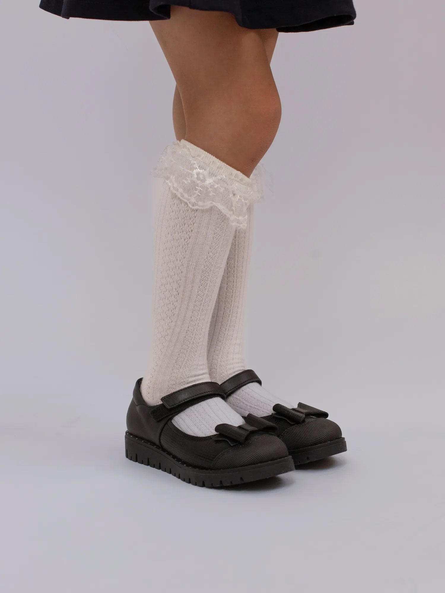 Элегантные и удобные школьные туфли для девочки с изящным бантиком по центру носка. Верх выполнен из натуральной кожи — прочного и дышащего материала, обеспечивающего комфорт при ежедневной носке. Удобная застёжка-липучка позволяет легко надевать обувь и надёжно фиксирует её на ноге. Резиновая подошва устойчива к износу и скольжению, обеспечивая устойчивость при ходьбе. Внутри — анатомическая стелька, которая поддерживает правильное формирование стопы и снижает нагрузку на ноги. Отличный выбор для школы — сочетание стиля и заботы о здоровье.