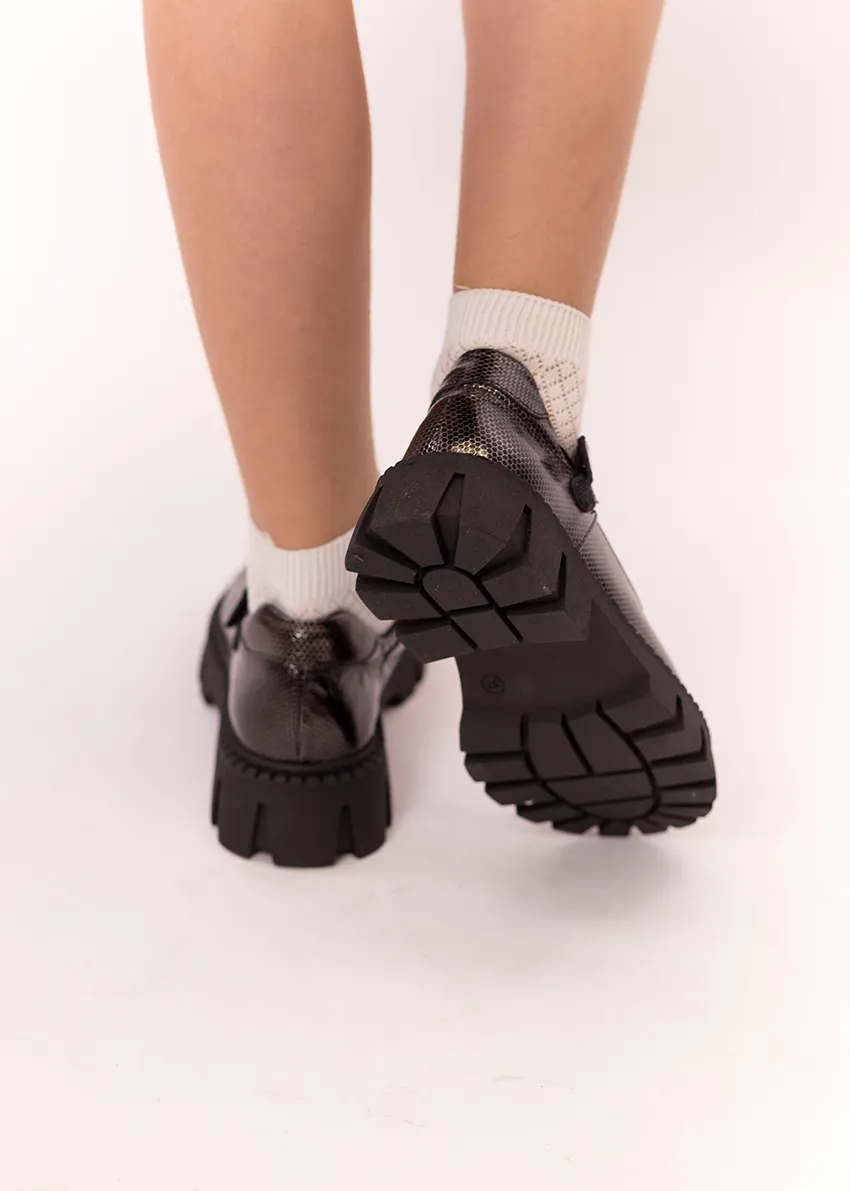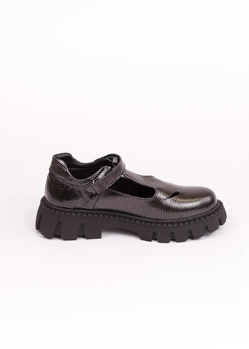 Дизайн отличается элегантной простотой и удобством. Эти туфли имеют закрытый мыс, что обеспечивает дополнительную защиту и комфорт во время носки, особенно в школьной обстановке. Удобная плоская подошва обеспечивает хорошую амортизацию и стабильность при ходьбе по различным поверхностям.