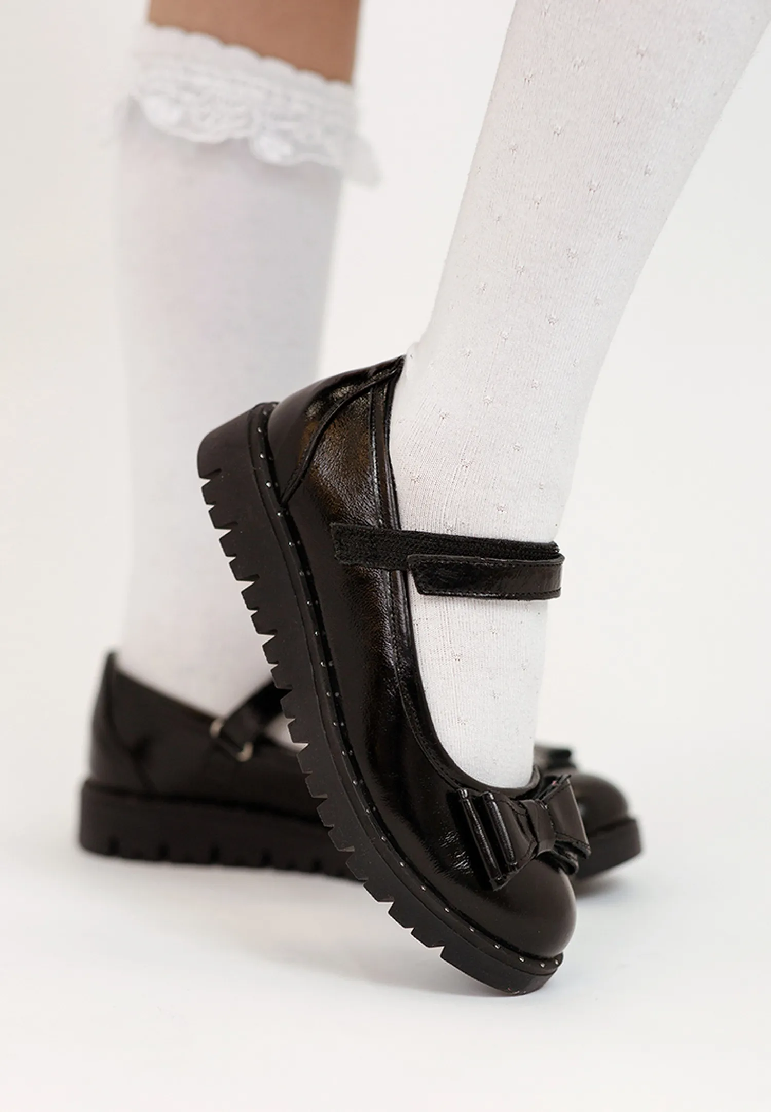 • Спереди туфли украшены лаконичным бантиком.
