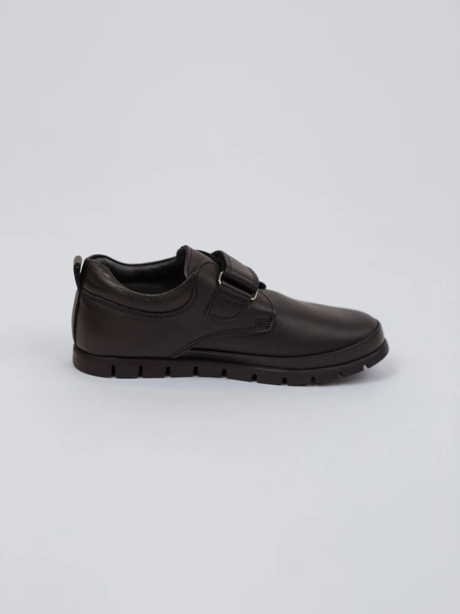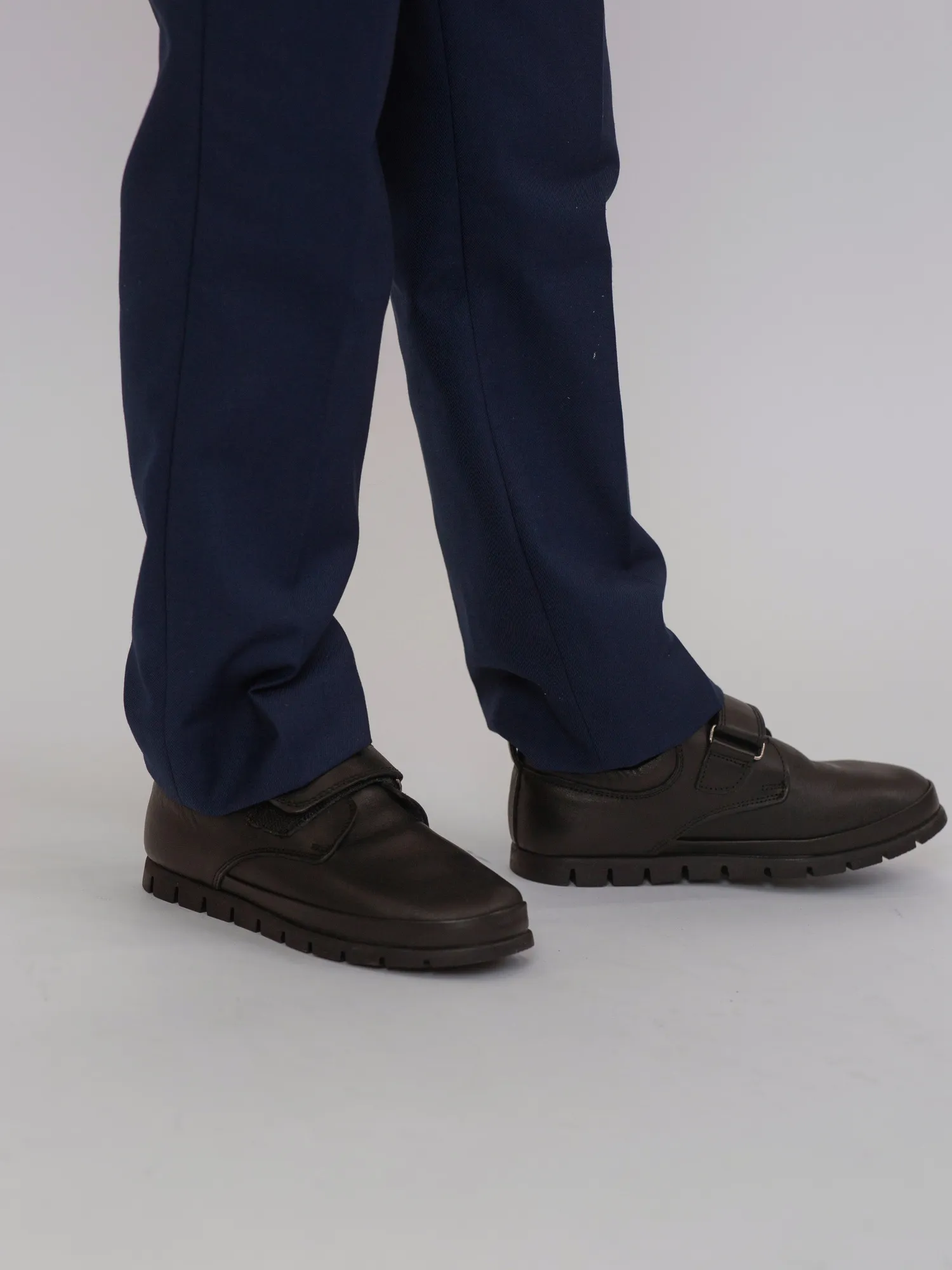Удобные и практичные школьные туфли для мальчика. Верх изготовлен из натуральной кожи — прочного и дышащего материала, обеспечивающего комфорт в течение всего дня. Застёжка-липучка упрощает процесс обувания и надёжно фиксирует стопу. Резиновая подошва устойчива к износу и скольжению, обеспечивая безопасность при ходьбе. Внутри — анатомическая стелька, поддерживающая правильное формирование стопы и снижающая нагрузку на ноги. Отличный выбор для повседневной школьной носки.