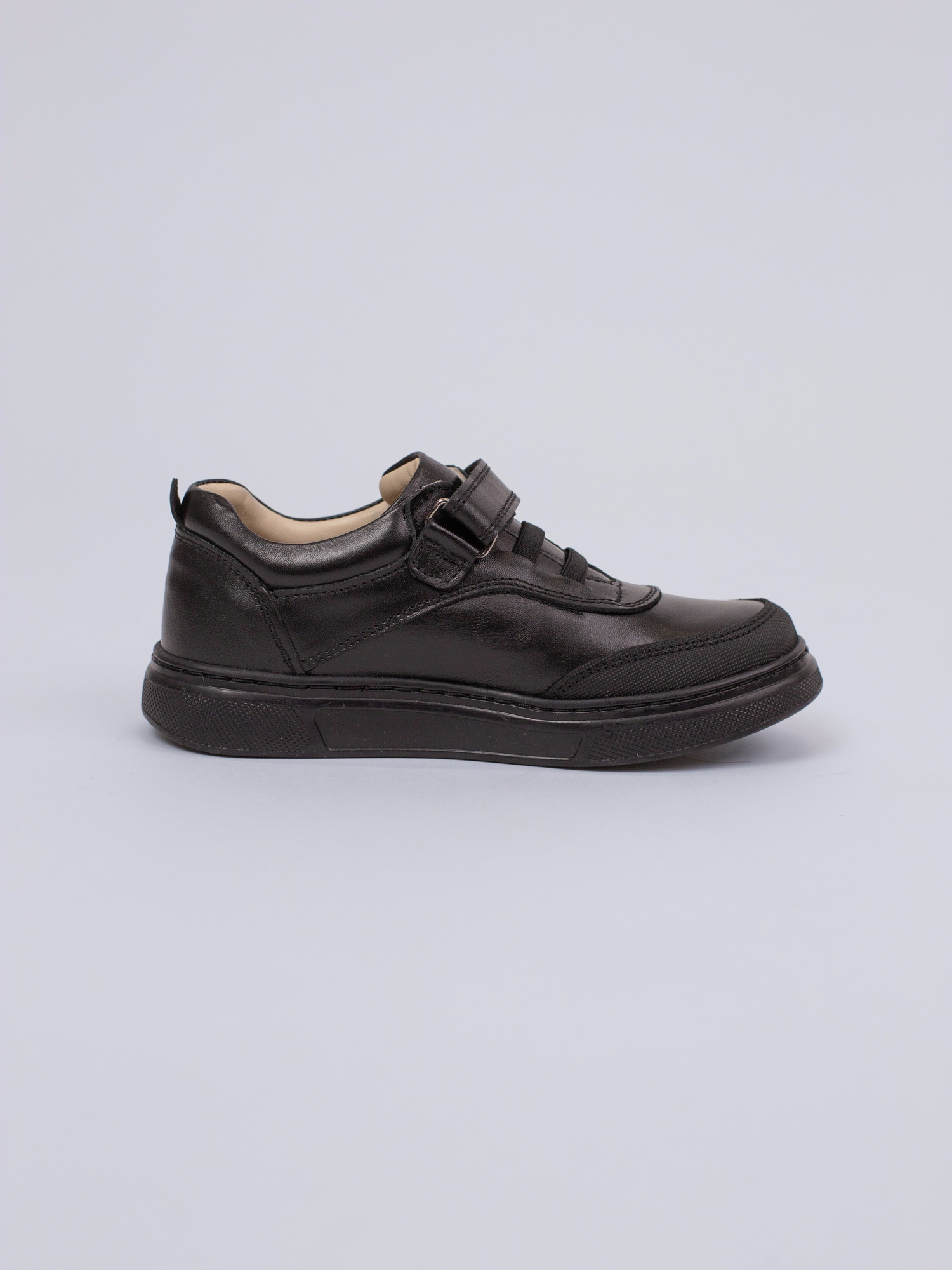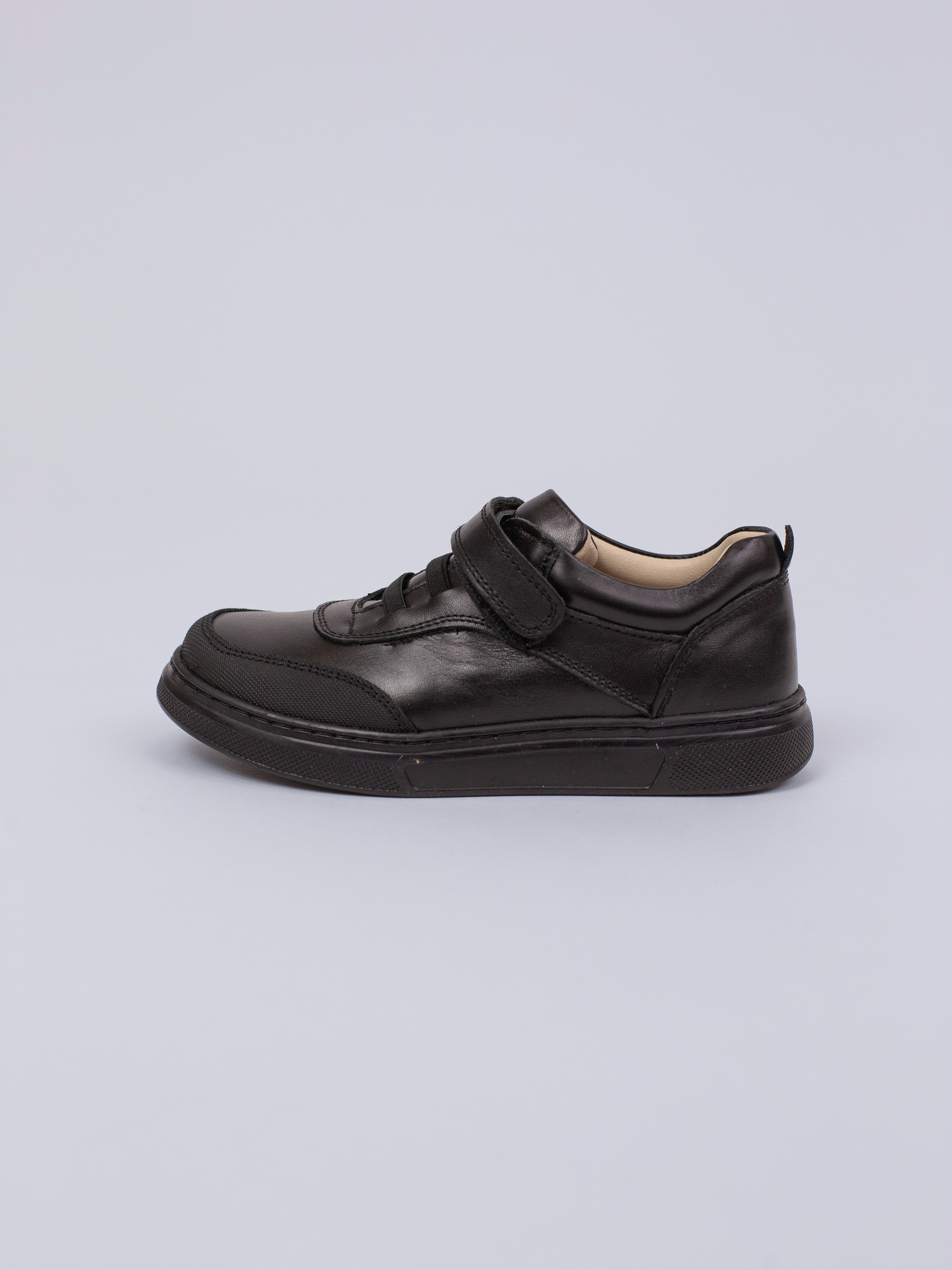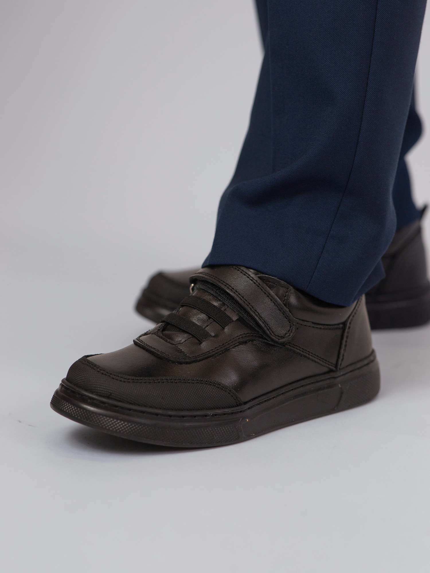Удобные и практичные школьные туфли для мальчика, сочетающие комфорт и надёжность. Верх выполнен из натуральной кожи, которая хорошо пропускает воздух и устойчива к износу. Модель оснащена застёжкой-липучкой и дополнительной эластичной резинкой, обеспечивающей плотную посадку и лёгкость при надевании. Подошва изготовлена из прочной резины с противоскользящими свойствами, что гарантирует устойчивость и безопасность при ходьбе. Внутри — анатомическая стелька, способствующая правильному формированию стопы и снижению нагрузки на ноги. Идеальный вариант для повседневной школьной носки.