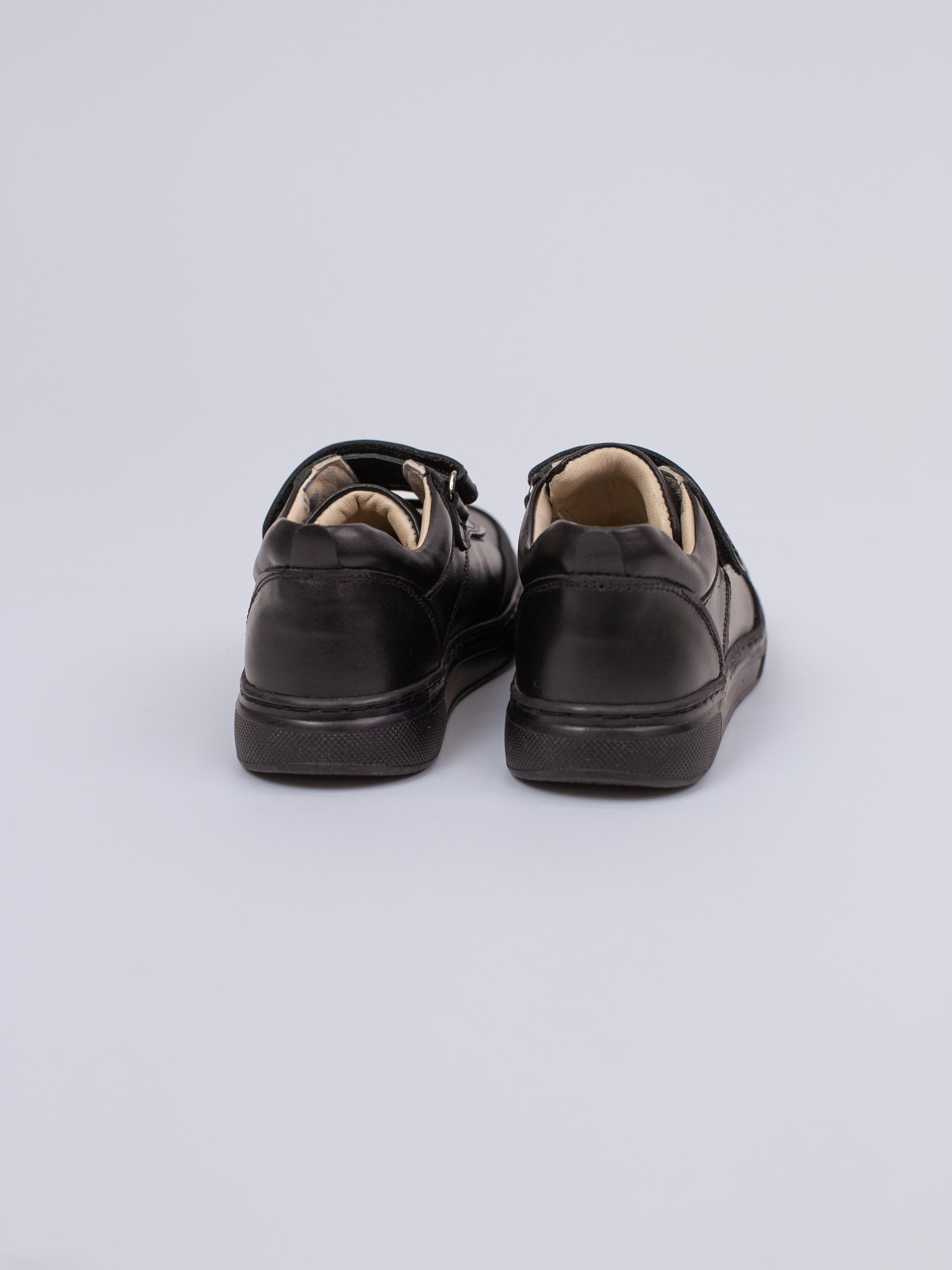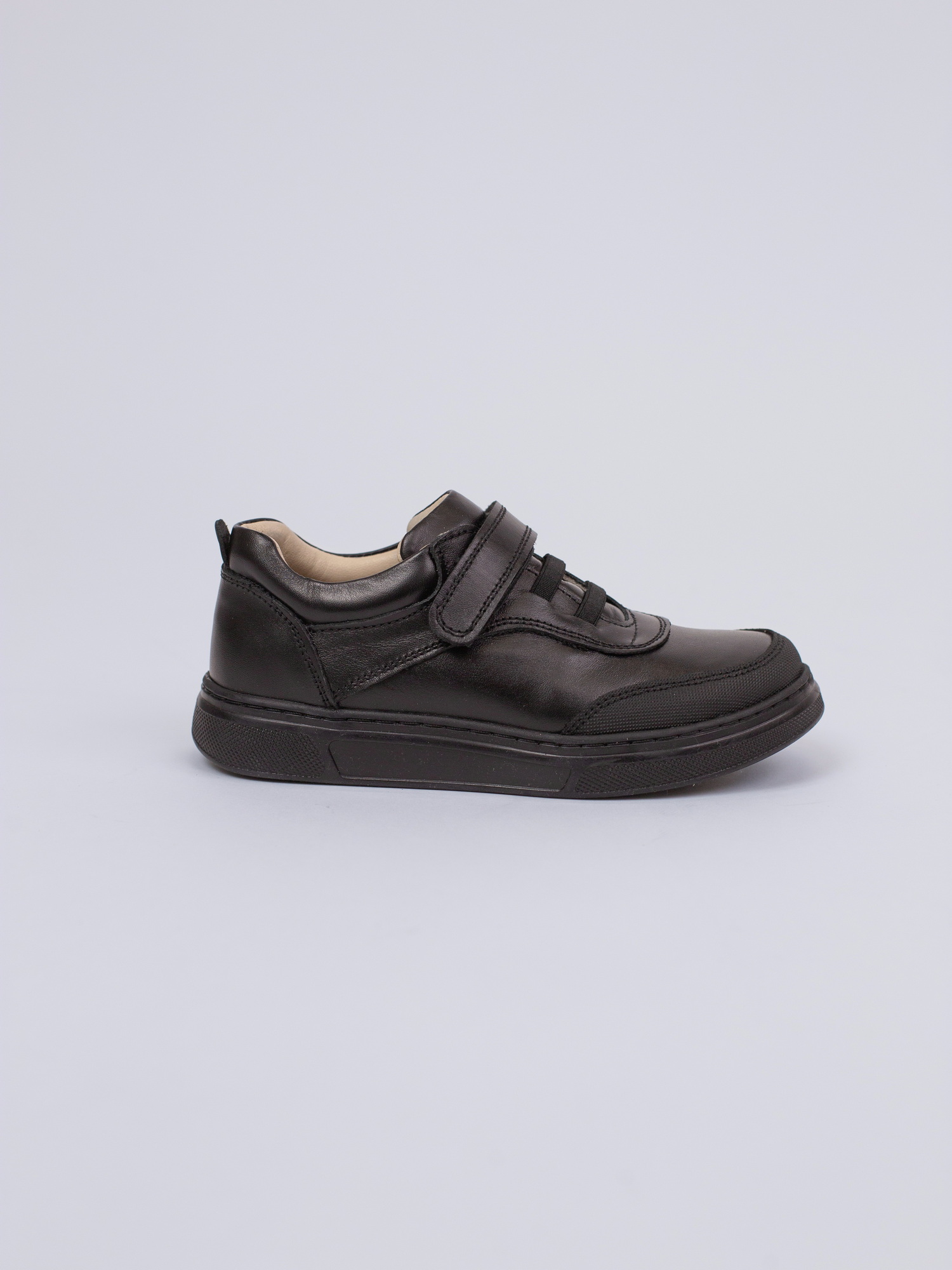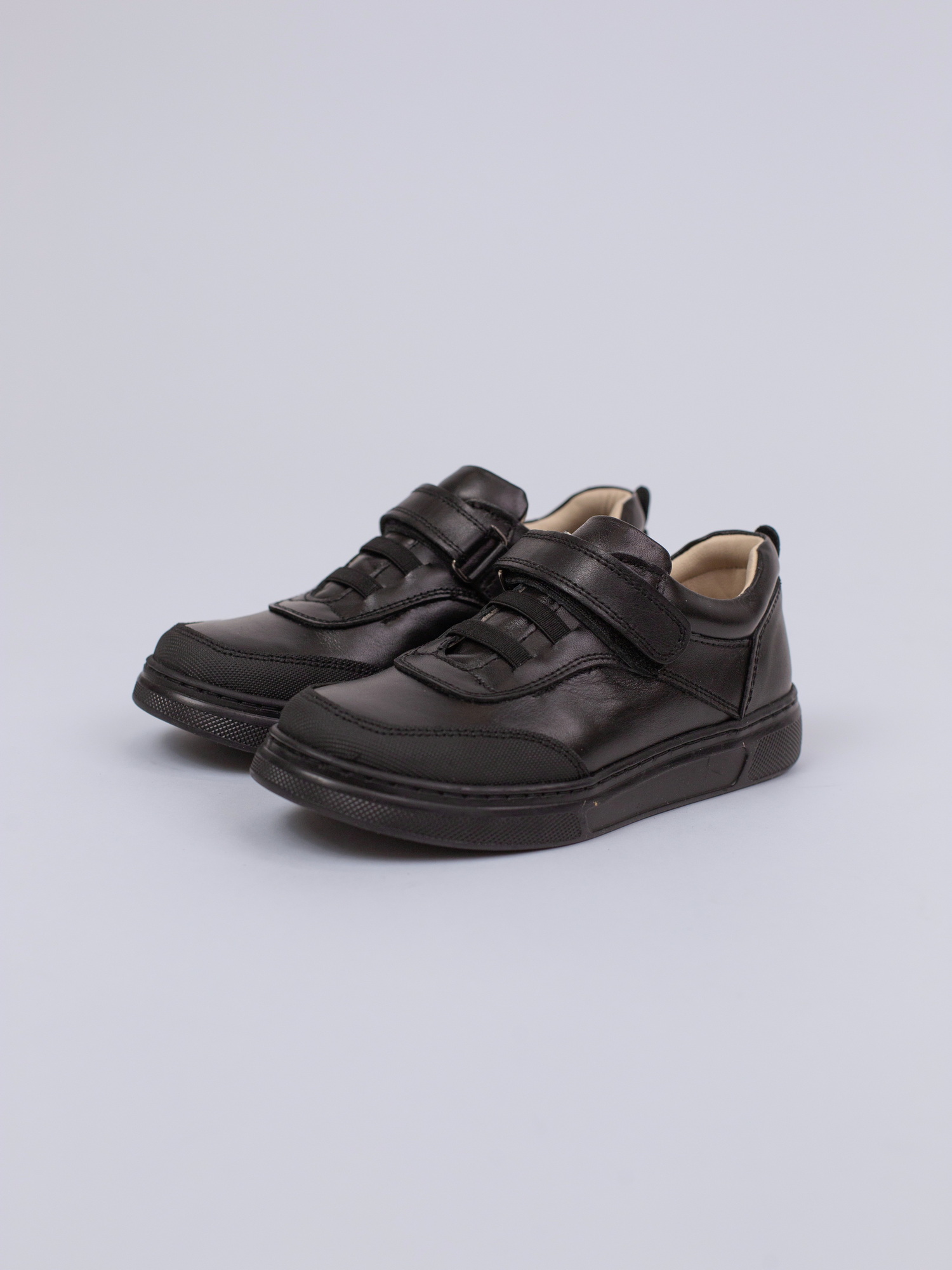 Удобные и практичные школьные туфли для мальчика, сочетающие комфорт и надёжность. Верх выполнен из натуральной кожи, которая хорошо пропускает воздух и устойчива к износу. Модель оснащена застёжкой-липучкой и дополнительной эластичной резинкой, обеспечивающей плотную посадку и лёгкость при надевании. Подошва изготовлена из прочной резины с противоскользящими свойствами, что гарантирует устойчивость и безопасность при ходьбе. Внутри — анатомическая стелька, способствующая правильному формированию стопы и снижению нагрузки на ноги. Идеальный вариант для повседневной школьной носки.