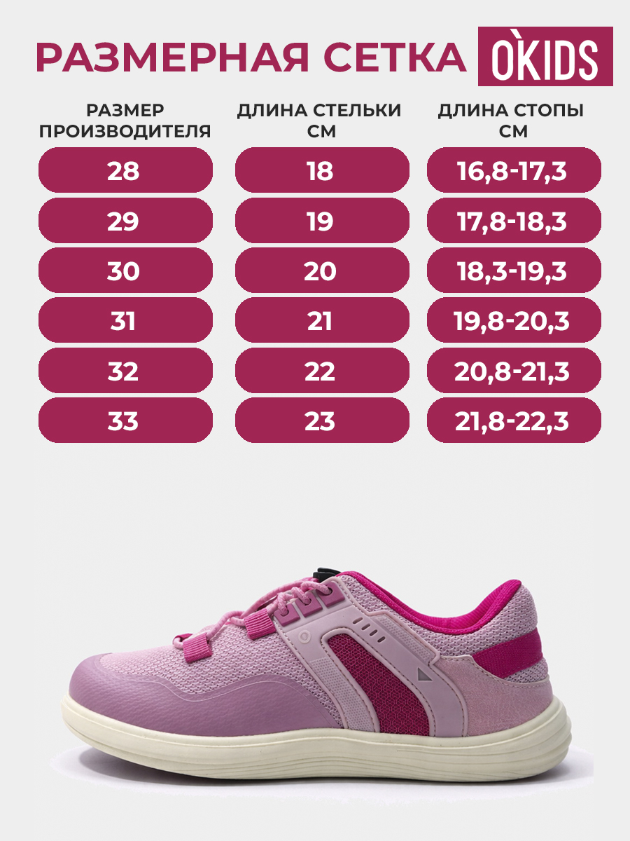 Обувь OKIDS — это современные модели с анатомической стелькой. Форма стельки поддерживает стопу в правильном положении, фиксирует пятку, равномерно распределяет и уменьшает нагрузку. Воздухопроницаемая и влагоотводящая технология стельки с вкраплениями угля препятствует скоплению бактерий. Стелька является профилактикой плоскостопия и способствует здоровому развитию и росту ребёнка.