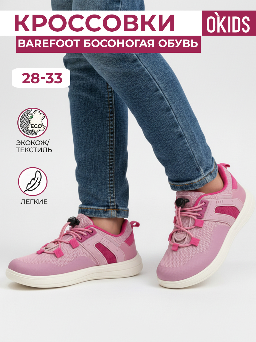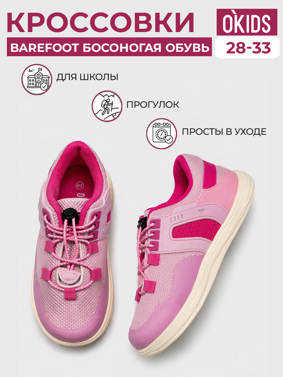 Практичные детские barefoot-кроссовки для повседневной носки и активных прогулок. Универсальный дизайн делает модель удобным выбором для тёплой погоды и межсезонья.