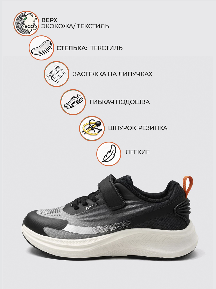 Практичные и комфортные кроссовки для мальчиков, созданные для активных будней и подвижных игр.