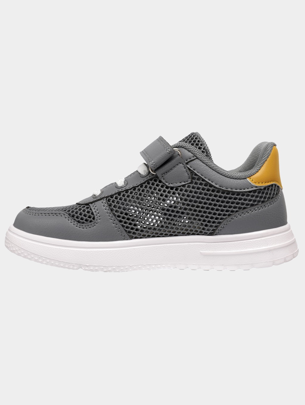 Верх выполнен из дышащего сетчатого текстиля и экокожи: сетка обеспечивает вентиляцию и комфорт в жаркую погоду, экокожа в зонах повышенного износа повышает прочность и защищает обувь.