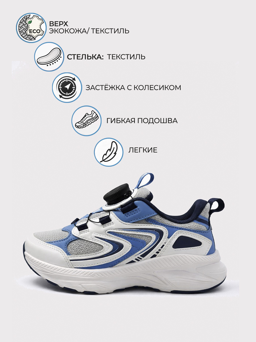 Мягкая текстильная подкладка обеспечивает комфорт в течение всего дня, а лёгкая подошва из филона с элементами ТПР отлично амортизирует шаги, оставаясь устойчивой и нескользящей. Удобная система быстрой фиксации позволяет легко надевать и снимать кроссовки, обеспечивая надёжную посадку на ноге ребёнка.