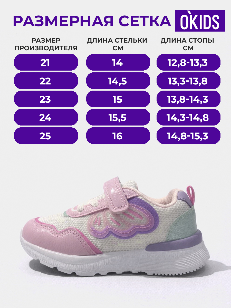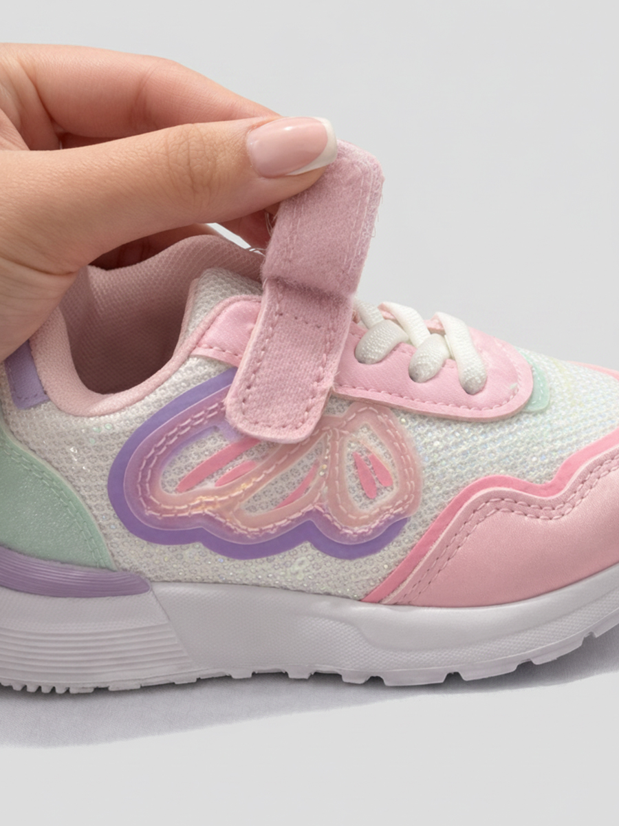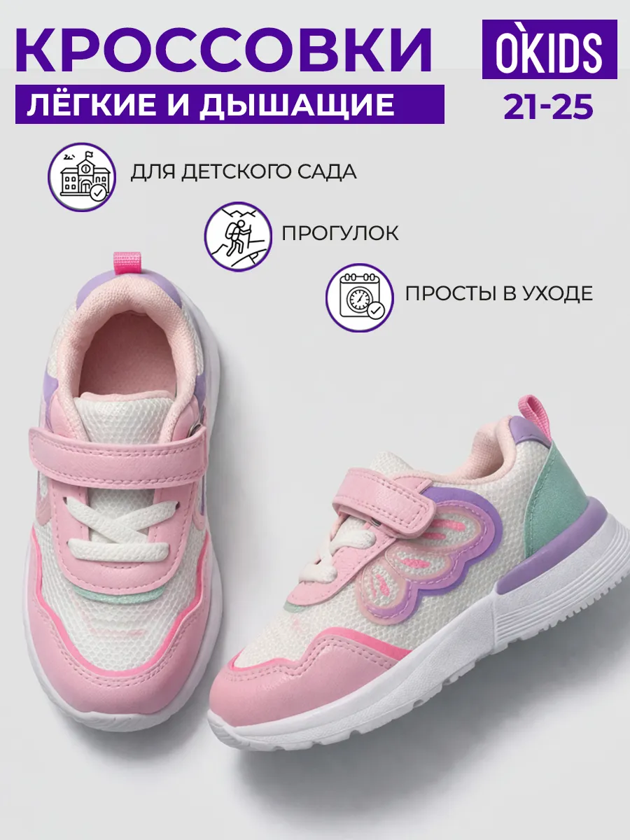 Стильные кроссовки для девочек, созданные для активных прогулок и комфортной повседневной носки. Нежный дизайн с декоративными элементами гармонично дополняет детский образ и подойдёт для тёплой погоды и межсезонья.