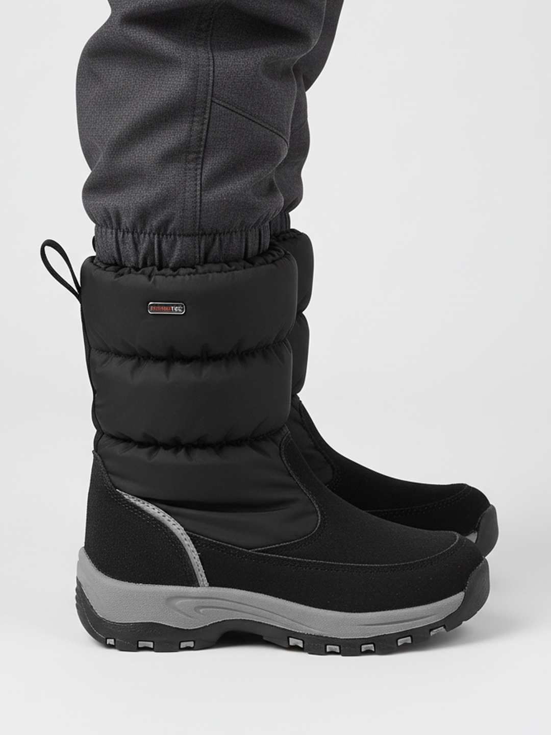 Водоотталкивающие зимние сапоги – легкие и удобные. Гибкая резиновая подошва обеспечивает хорошее сцепление, а полушерстяная подкладка в сочетании с фетровой стелькой греет ножки.