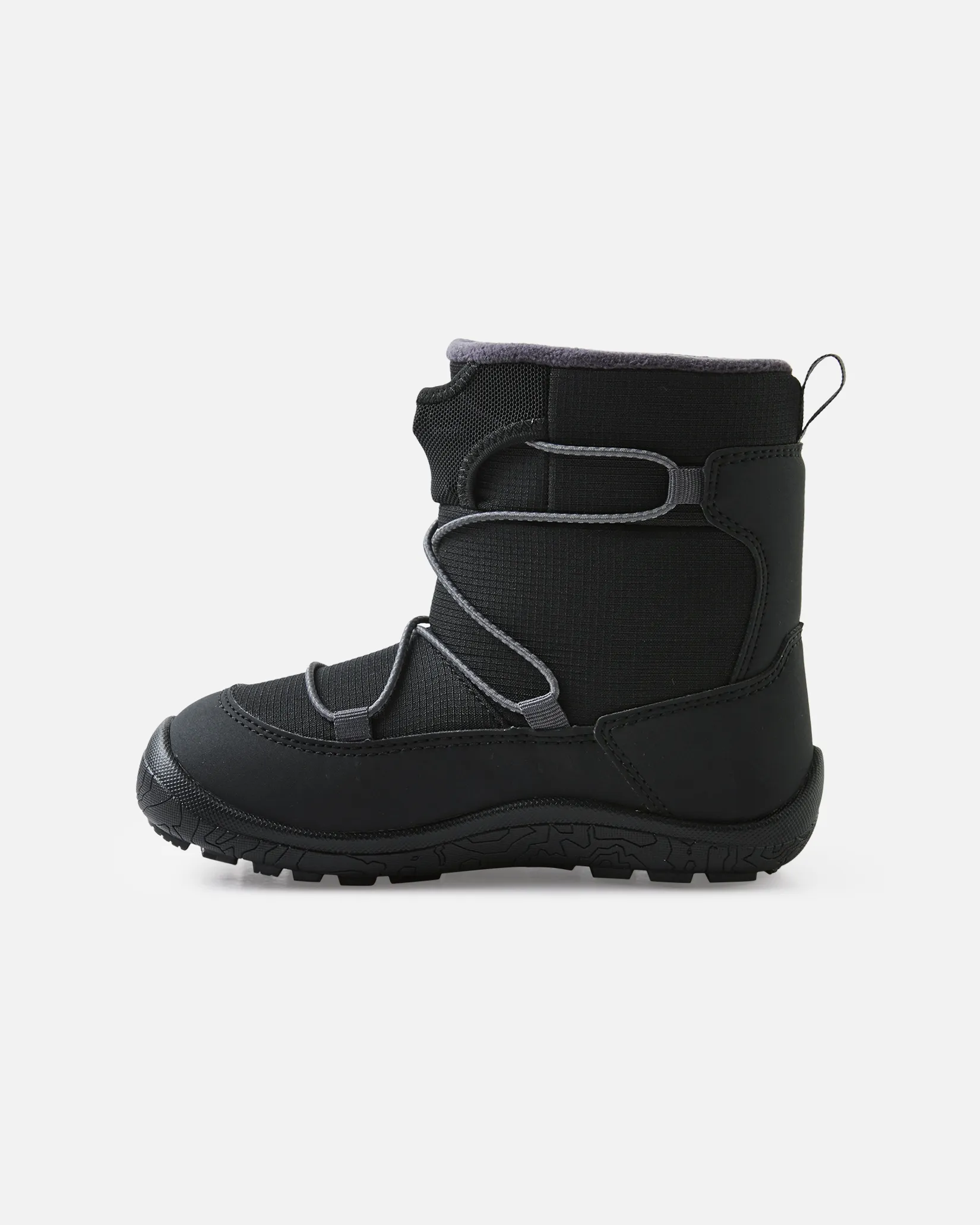 Эти ботинки в минималистичном стиле «босиком» созданы, чтобы маленькие ножки оставались в тепле и сухости даже в снежные зимние дни. Водонепроницаемая конструкция с герметичными мембранными вставками надёжно защищает от влаги, а толстая флисовая подкладка сохраняет комфорт при температурах до –20 °C.