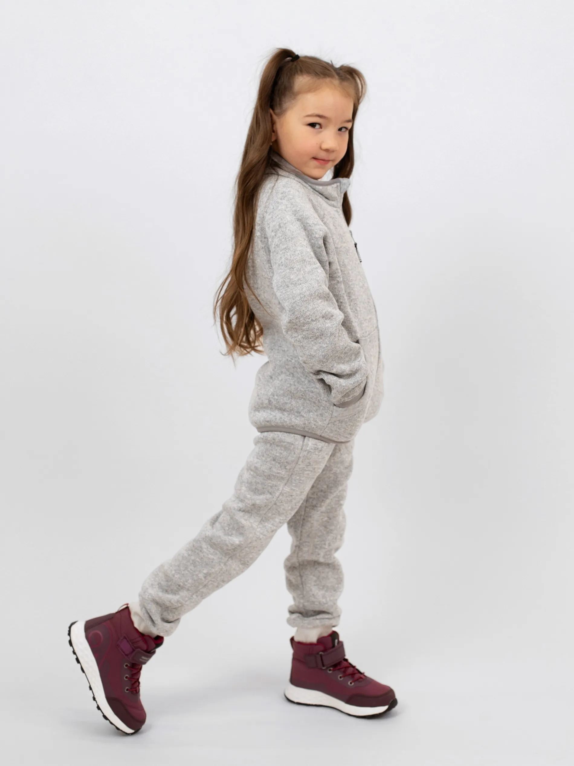 Он также отлично подходит в качестве домашней одежды! Верхнюю часть этого комплекта удобно надевать благодаря застежке-молнии на всю длину, а специальная вставка защищает шею и подбородок от царапин. Облегающий удлиненный нижний край сзади обеспечивает дополнительное тепло. Мягкий материал этого комплекта базового слоя для малышей выглядит как вязаный, но в то же время обладает всеми преимуществами флиса: он дарит комфорт и быстро сохнет, отводя влагу к внешним слоям. Эта универсальная модель радует самыми яркими цветами сезона.