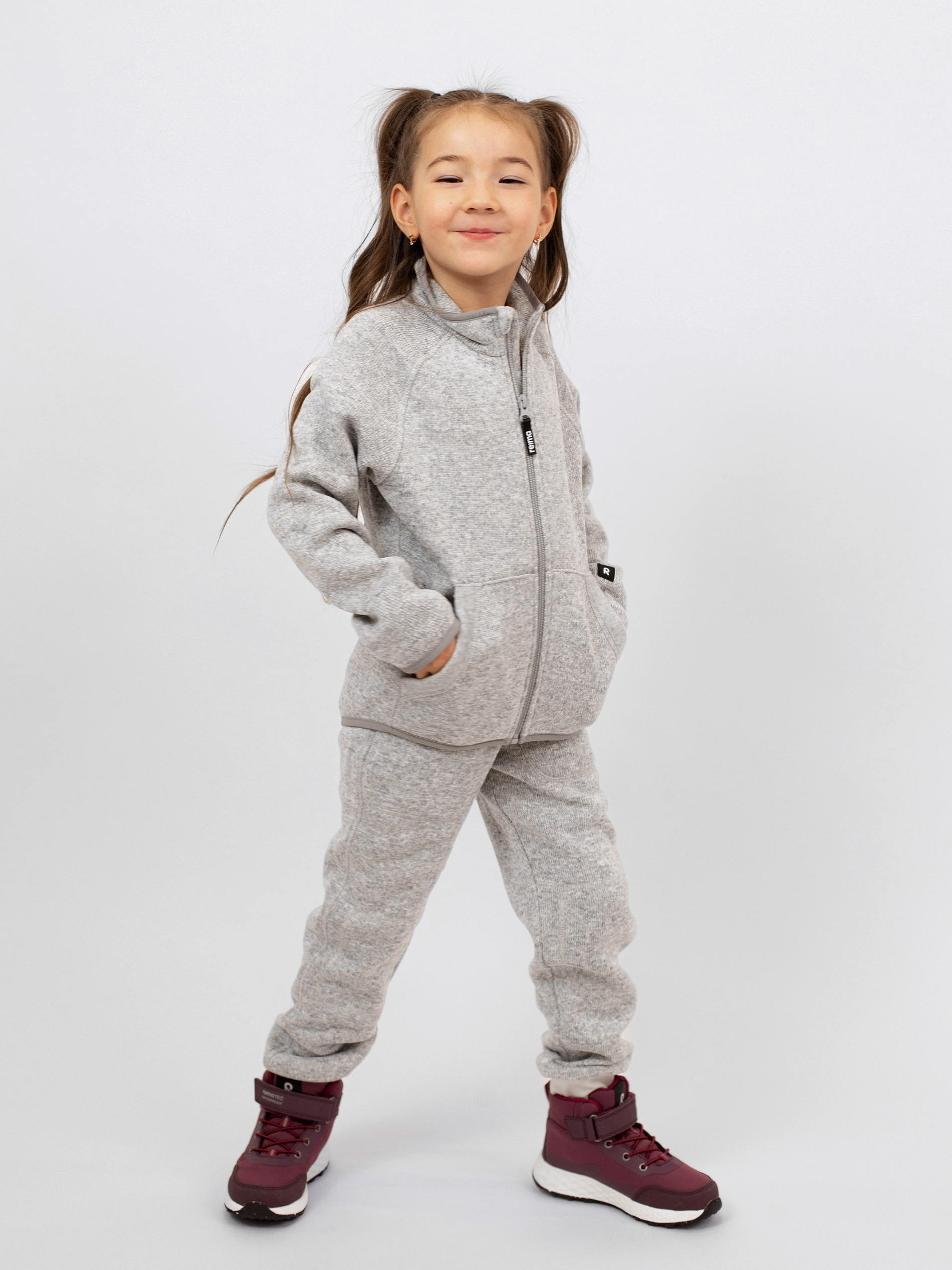 Он также отлично подходит в качестве домашней одежды! Верхнюю часть этого комплекта удобно надевать благодаря застежке-молнии на всю длину, а специальная вставка защищает шею и подбородок от царапин. Облегающий удлиненный нижний край сзади обеспечивает дополнительное тепло. Мягкий материал этого комплекта базового слоя для малышей выглядит как вязаный, но в то же время обладает всеми преимуществами флиса: он дарит комфорт и быстро сохнет, отводя влагу к внешним слоям. Эта универсальная модель радует самыми яркими цветами сезона.
